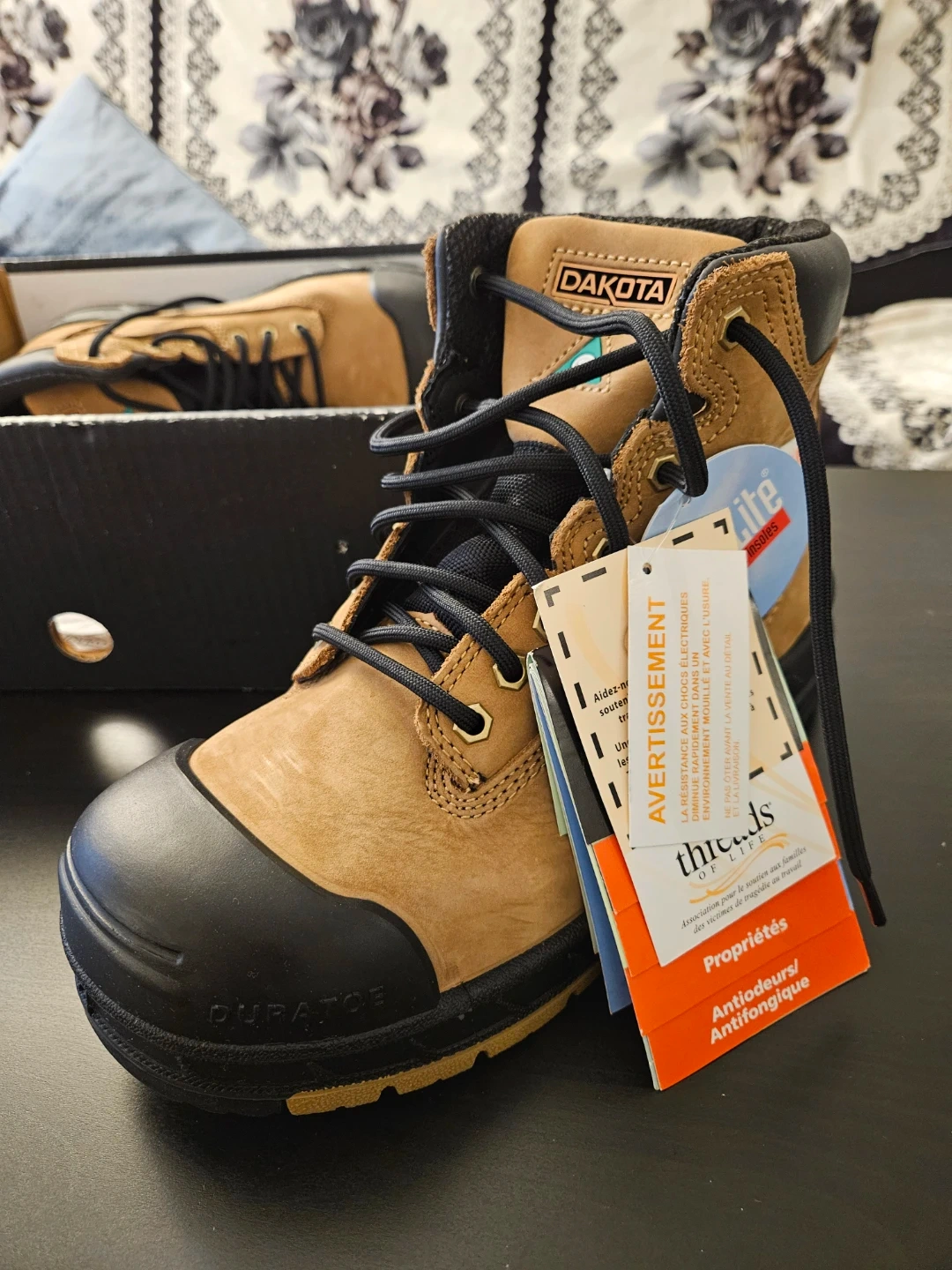 These Dakota 400-2 work boots are brand new, never worn and ready for a new owner! They're a men's size 9 (US). The box is included. Plus 3 pairs of shoe laces.