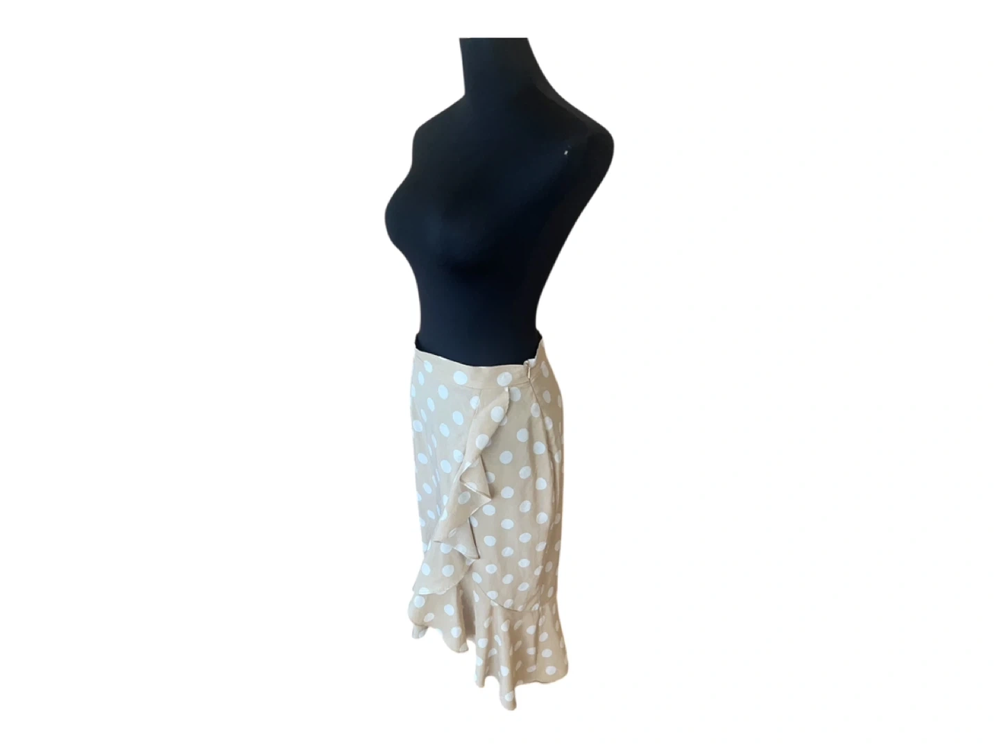 Vintage 2000s Y2K White & Tan Polka Dot High Waist Skirt Ruffle Details Side Zipper S/M