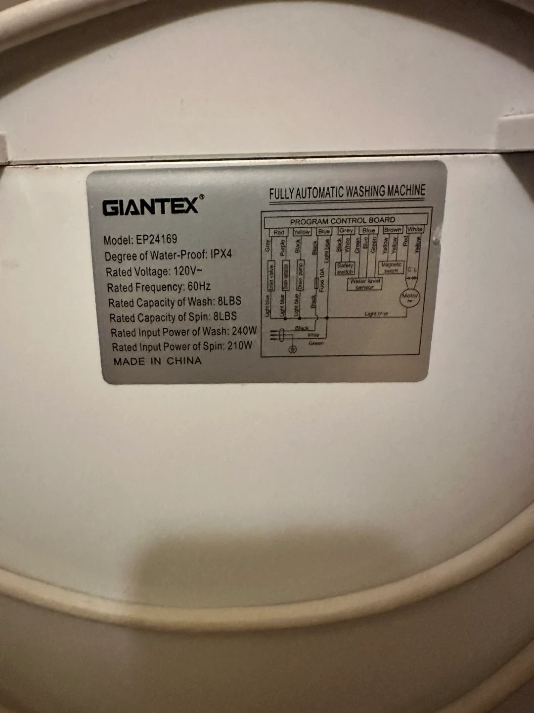 Selling a Giantex portable washing machine, model EP24169. It's a fully automatic washing machine with a water-proof rating of IPX4.