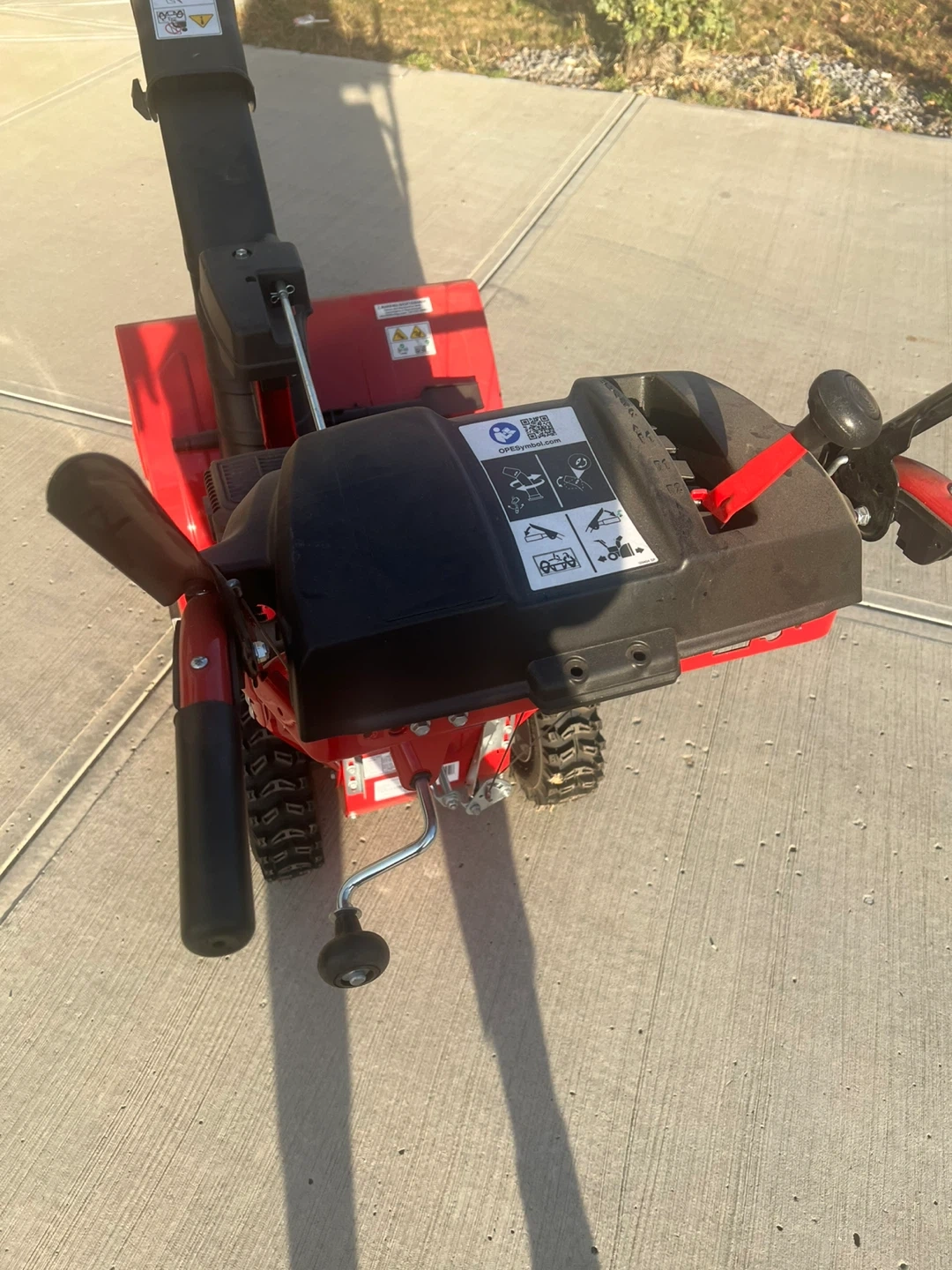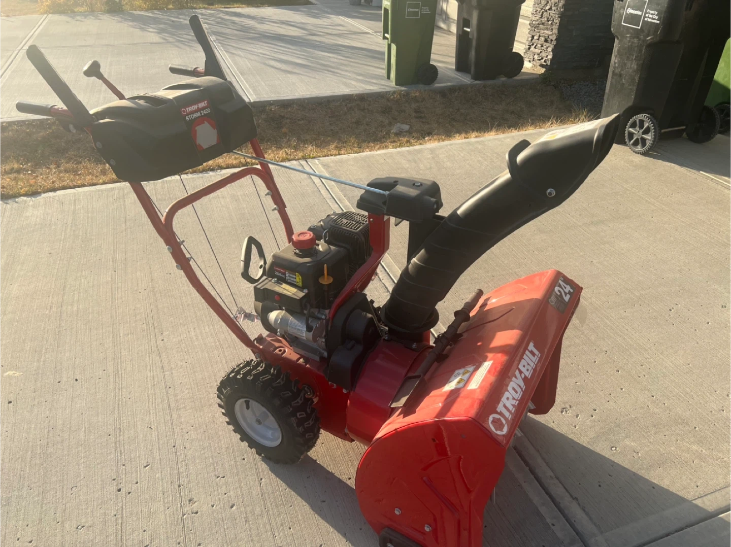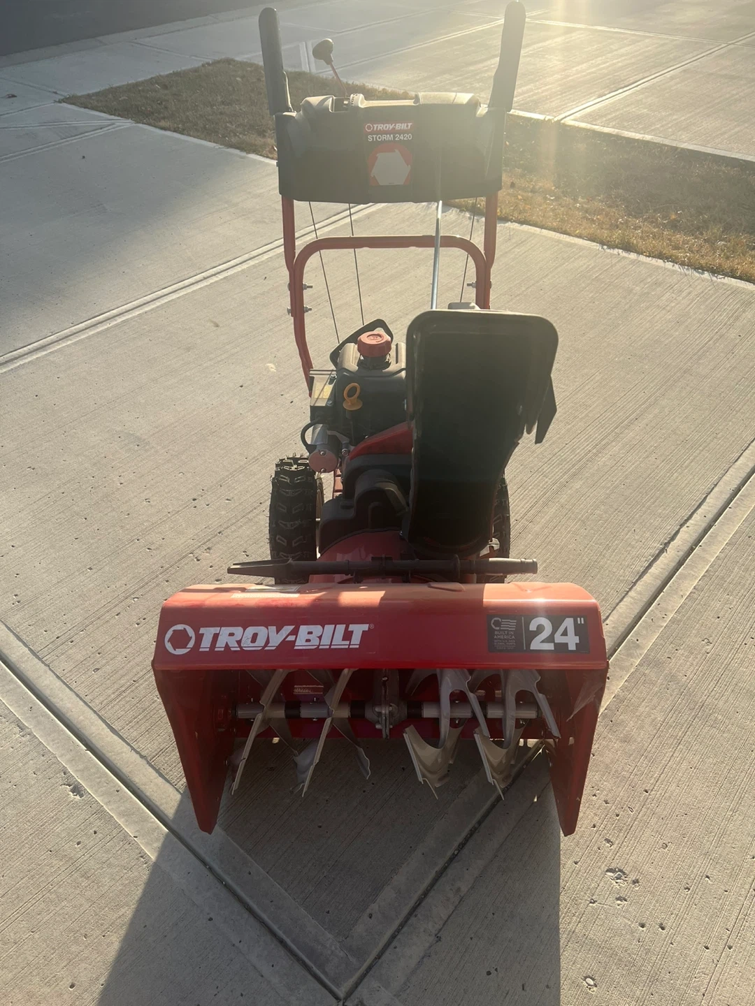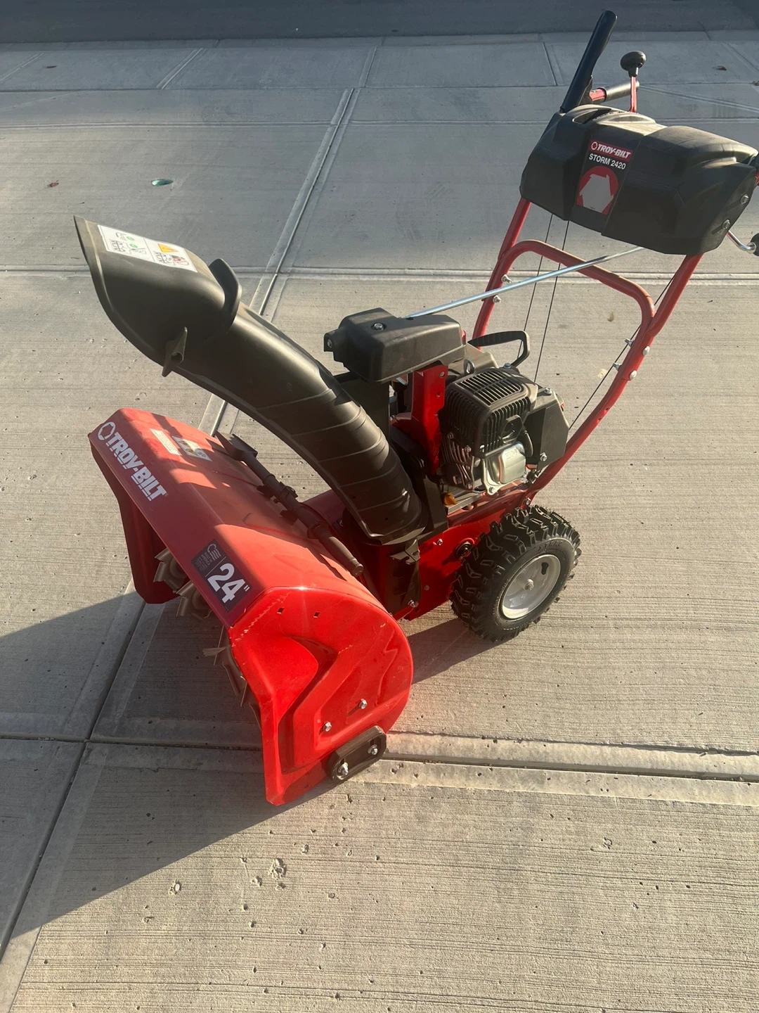 Selling a Troy-Bilt Storm 2420 snow blower with a 24-inch clearing width. It's in great condition and ready to tackle winter snowfalls