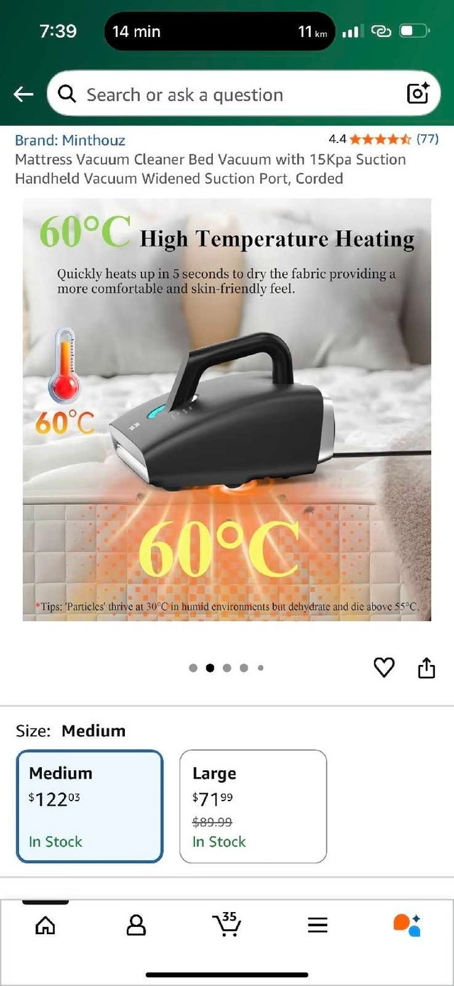 Minthouz mattress vacuum cleaner in very good condition. Lightly used with minimal signs of wear and fully functional.