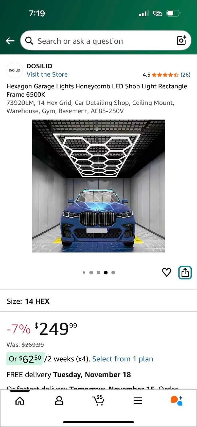 DOSILIO 14-Grid Hexagon LED Garage Light – 73920LM, 6500K, 672W, Hardwire/Plug-In, Ceiling or Wall Mount. New (Open Box). Box opened, item unused but tested.