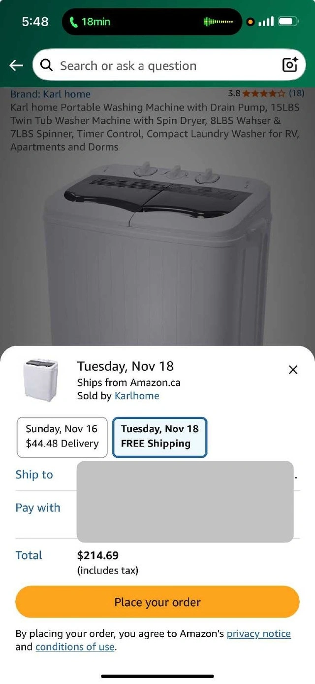 Karl Home Portable Twin-Tub Washing Machine – 15 lbs Capacity, Drain Pump, Compact Design. New (Open Box). Box opened but item unused — tested !!!