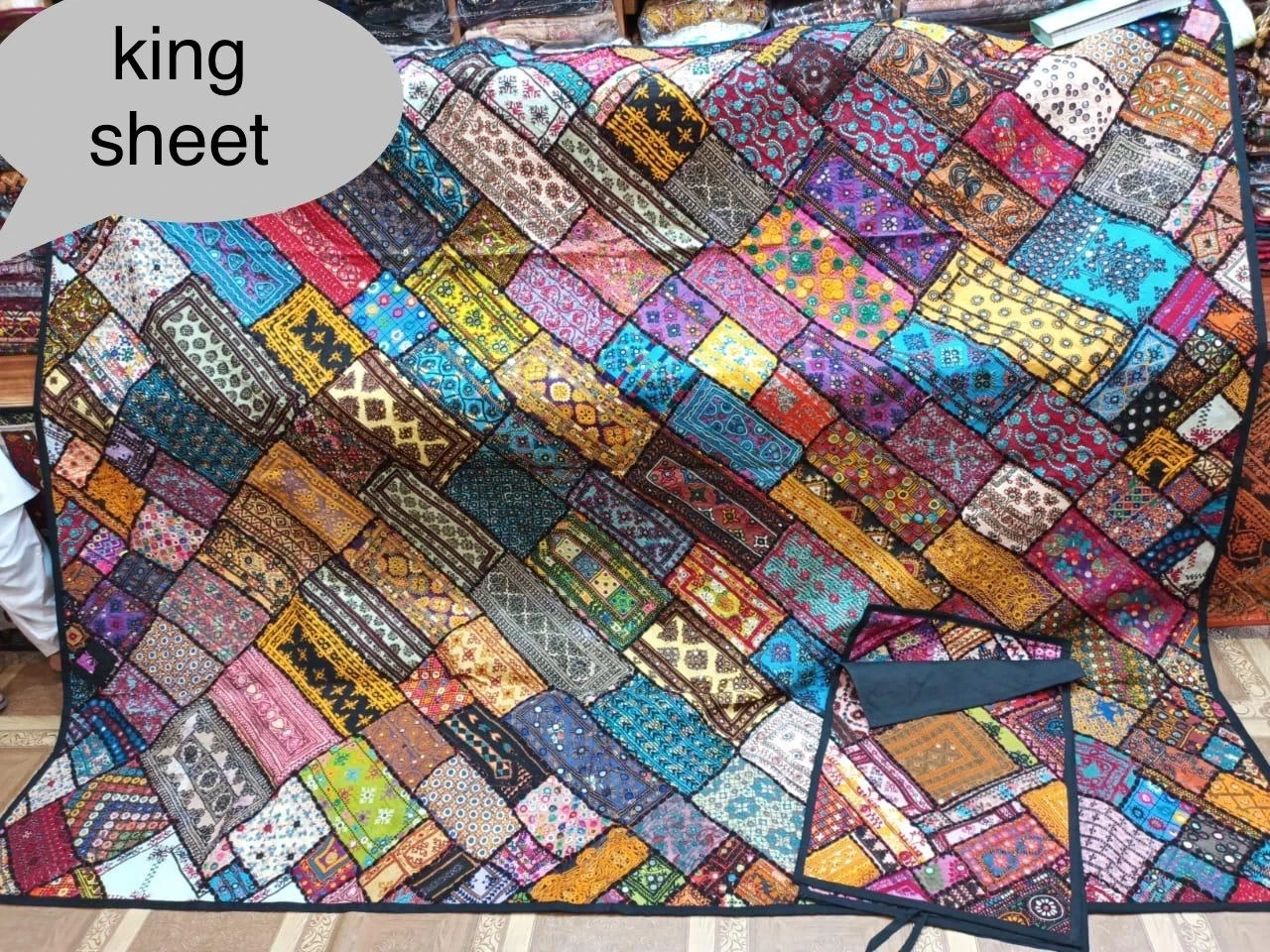 Selling a vibrant king size bed sheet with a unique patchwork design! It's new condition and will add a pop of colour to any bedroom all handwork