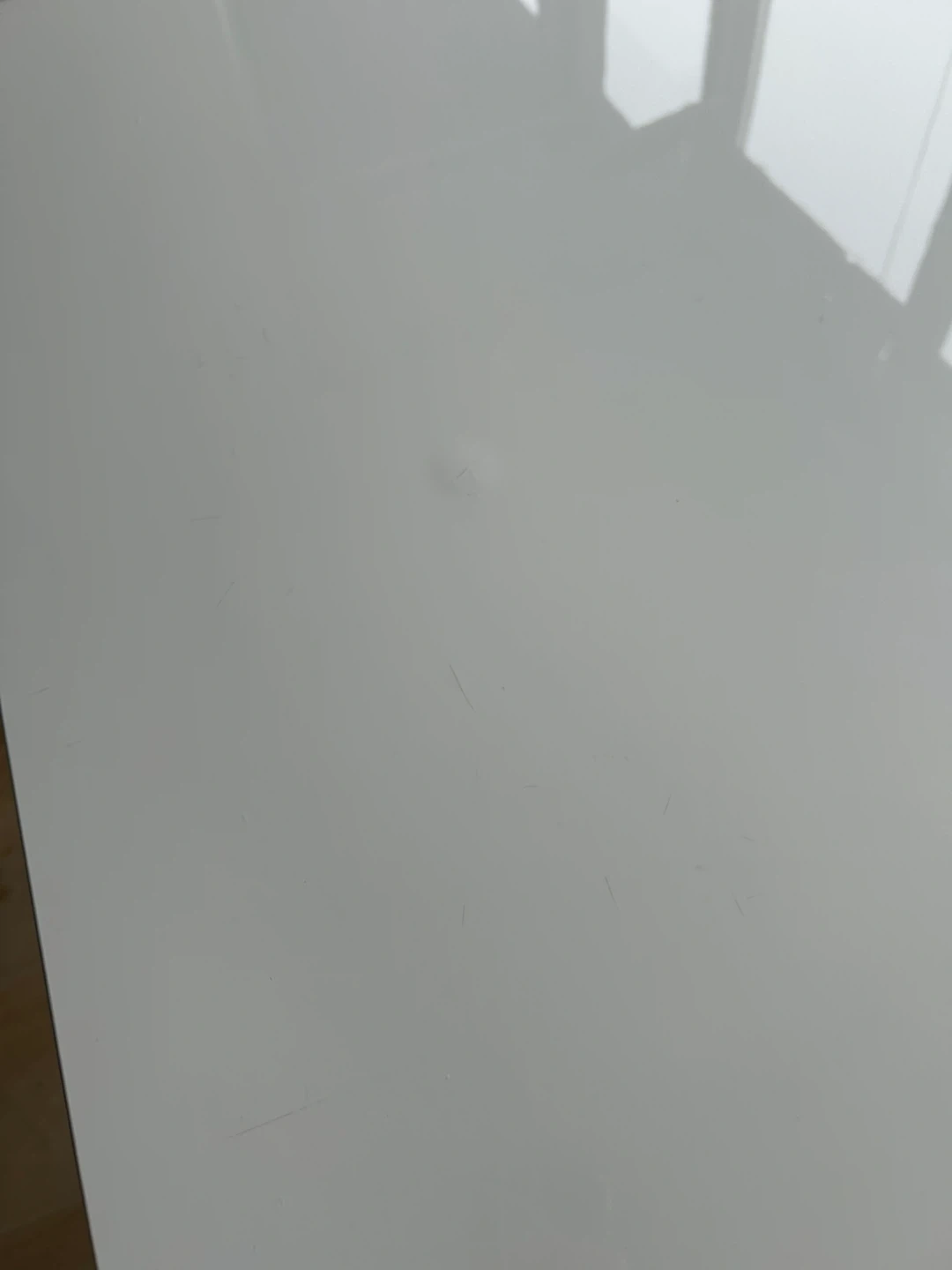 Selling a dining table from IKEA. The table is white with a chrome frame. There are some minor scratches on the table top, but it's otherwise in good condition. Dimensions are 135 cm x 85 cm x 75 cm (53 1/8" x 33 1/2" x 29 1/2")