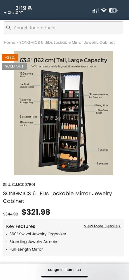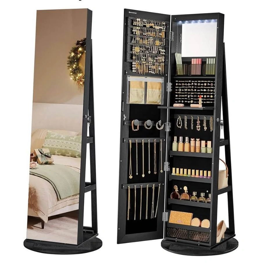 Upgrade your bedroom or walk-in closet with this brand new SONGMICS full-length mirror jewelry cabinet. Fully assembled and ready to use, it features built-in LEDs, a lockable door, and velvet-lined storage for necklaces, rings, bracelets, and earrings. Perfect as a personal organizer or a thoughtful gift.