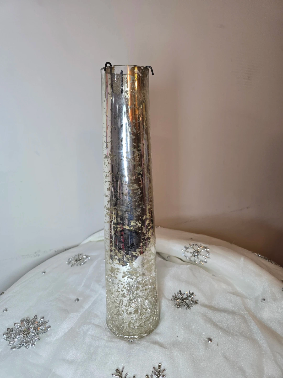Selling a beautiful silver mercury glass vase! It's in great condition and would look lovely as a centerpiece or accent piece in your home