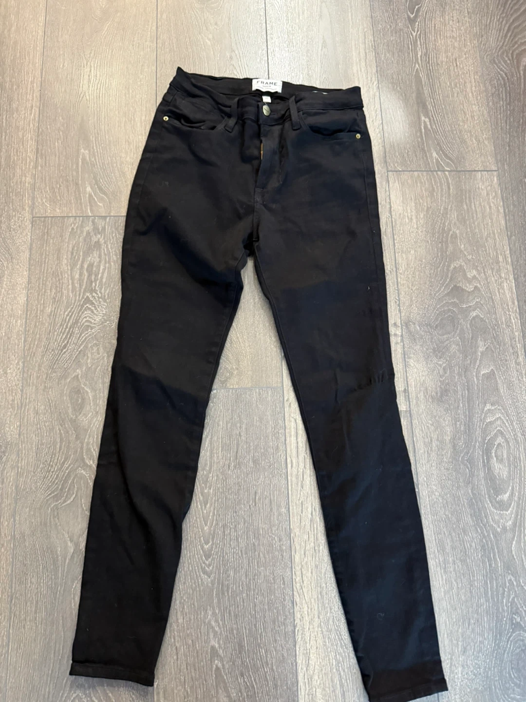 Selling a pair of FRAME Le High Skinny jeans in black! They are size 27 and in great condition. Perfect for any occasion!