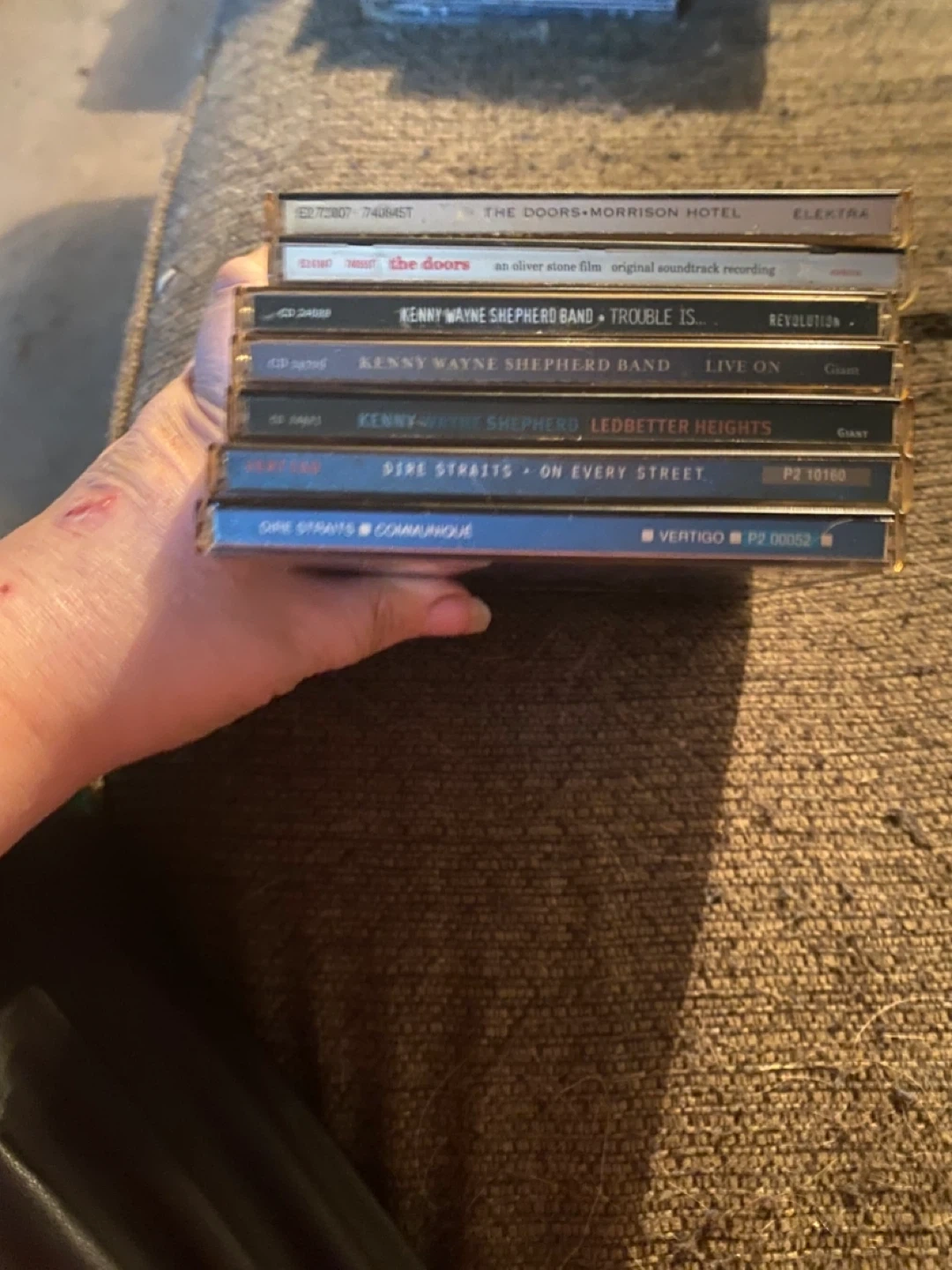 Selling a collection of CDs featuring some great artists! Includes albums from The Doors (Morrison Hotel, Oliver Stone film soundtrack), Dire Straits (On Every Street, Communique), and Kenny Wayne Shepherd Band (Trouble Is..., Live On, Ledbetter Heights)