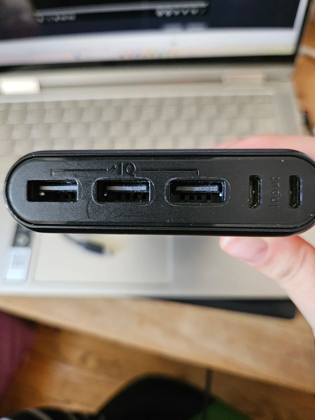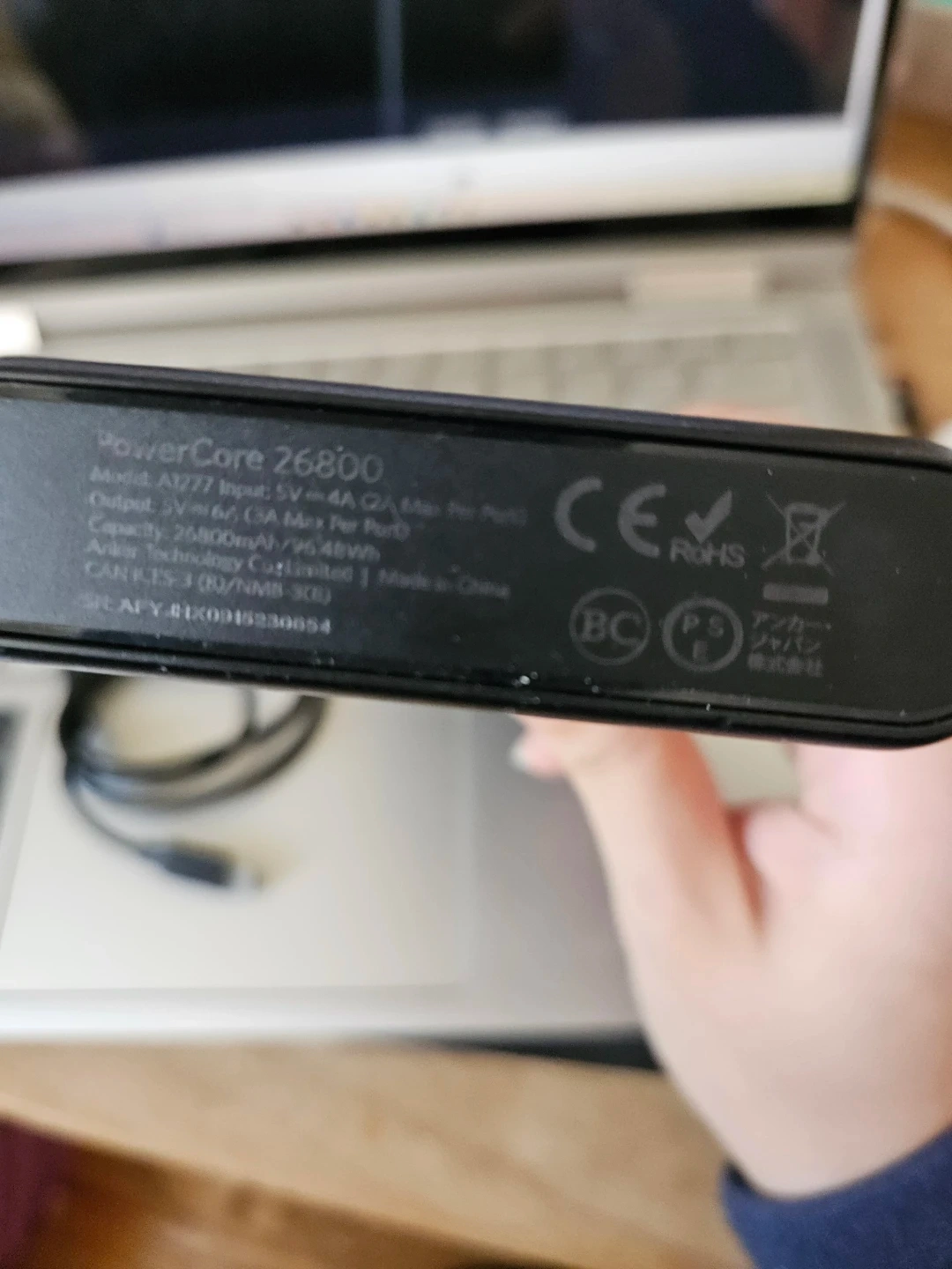 It comes with a charging cable. Capacity: 26800mAh/96.48Wh