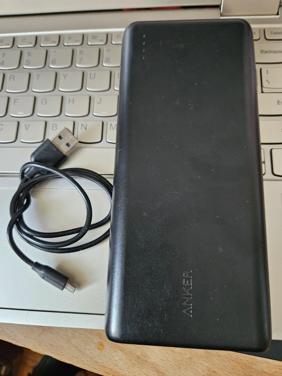 It comes with a charging cable. Capacity: 26800mAh/96.48Wh