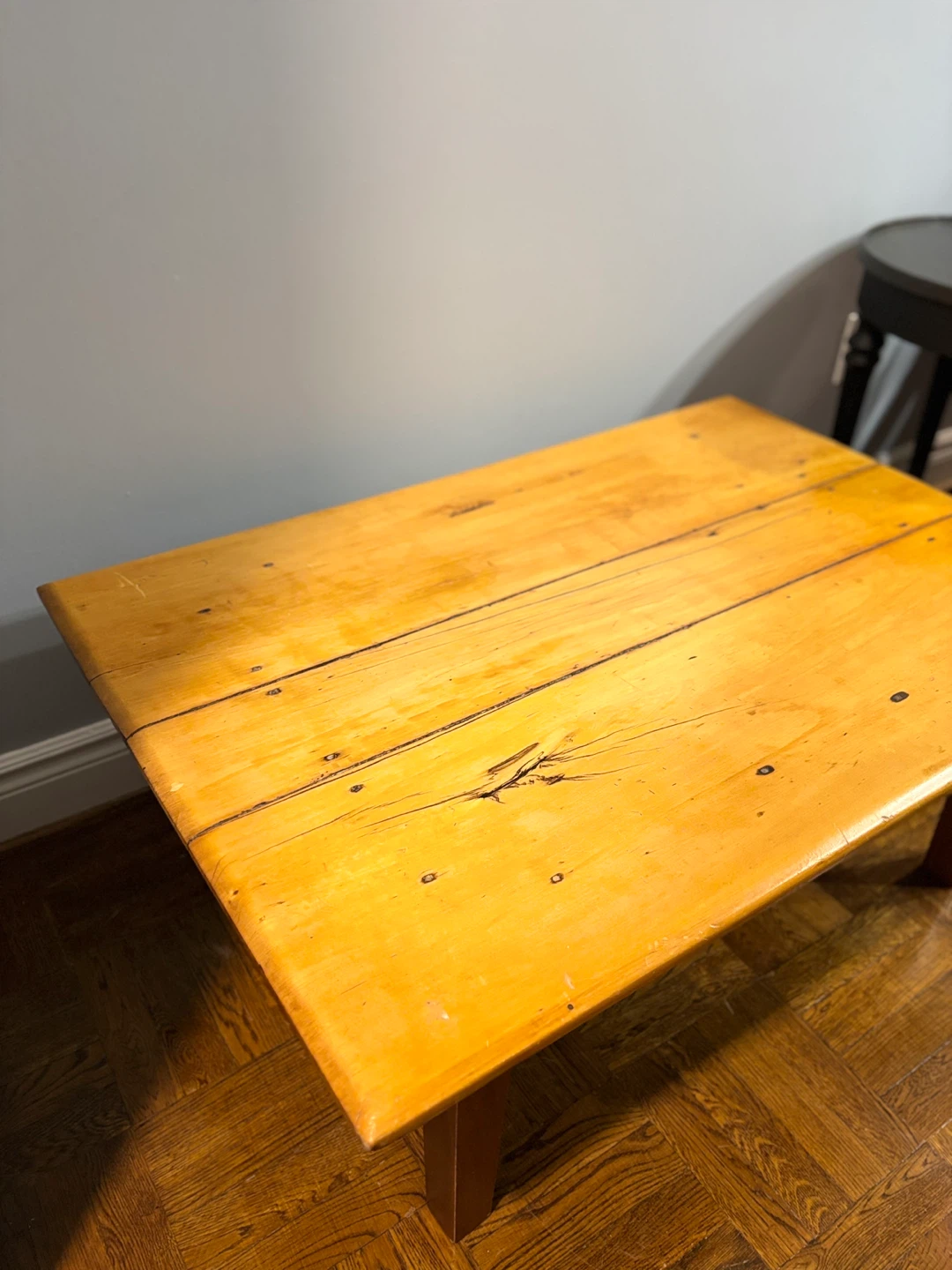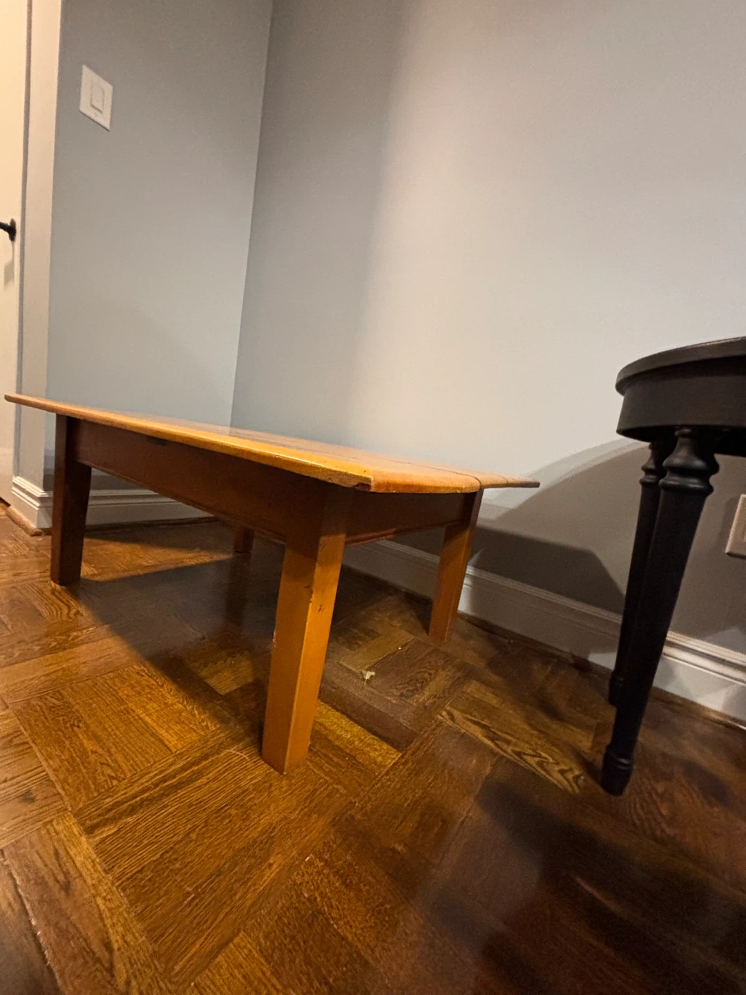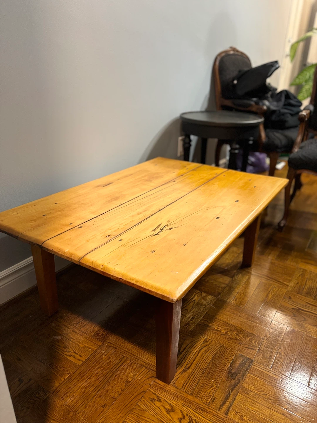 Selling a wooden coffee table. It has a warm, natural finish and a simple, sturdy design. Perfect for adding a rustic touch to your living room!