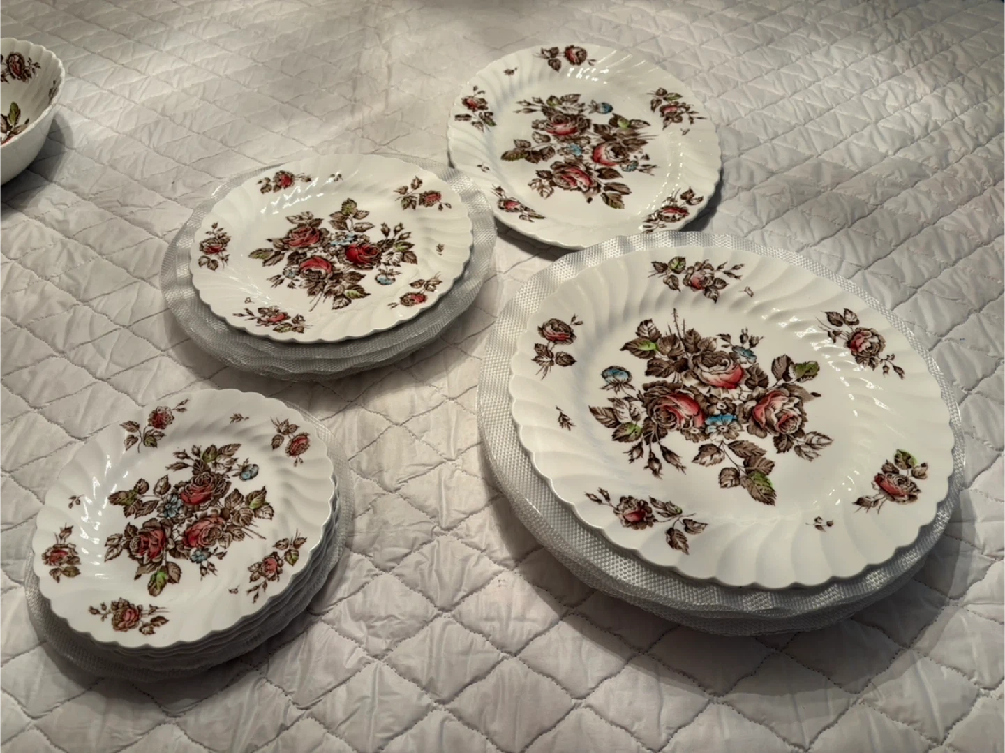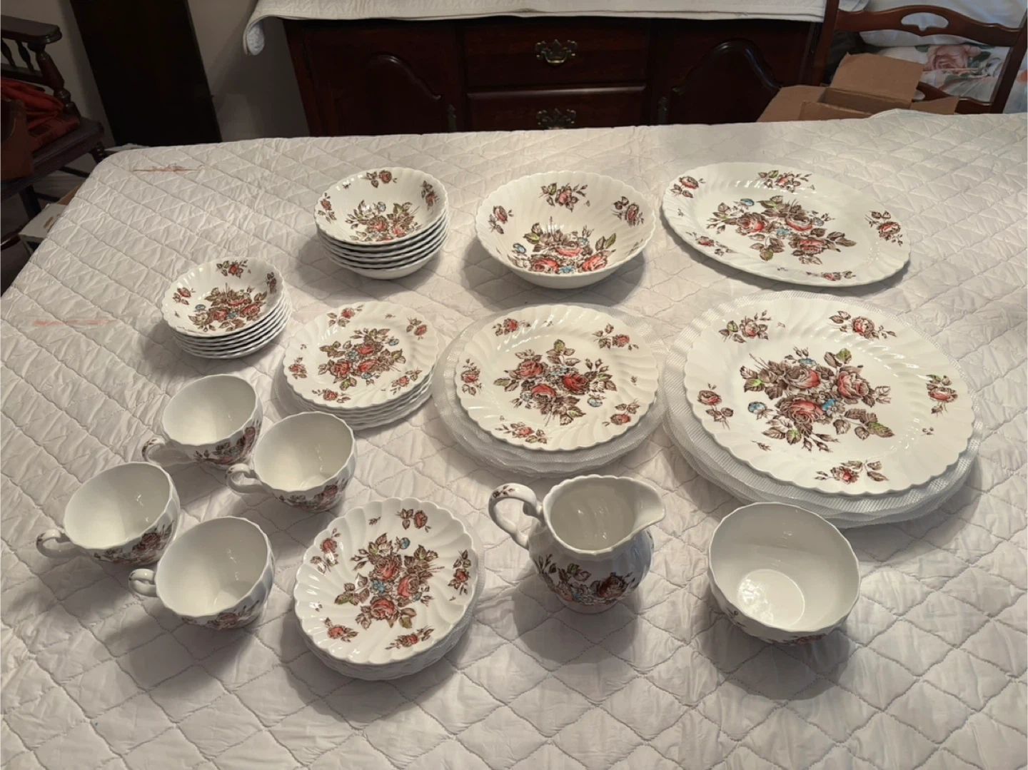 Selling a beautiful Johnson Bros Devon Sprays dinnerware set! It features a lovely floral design on a white background.