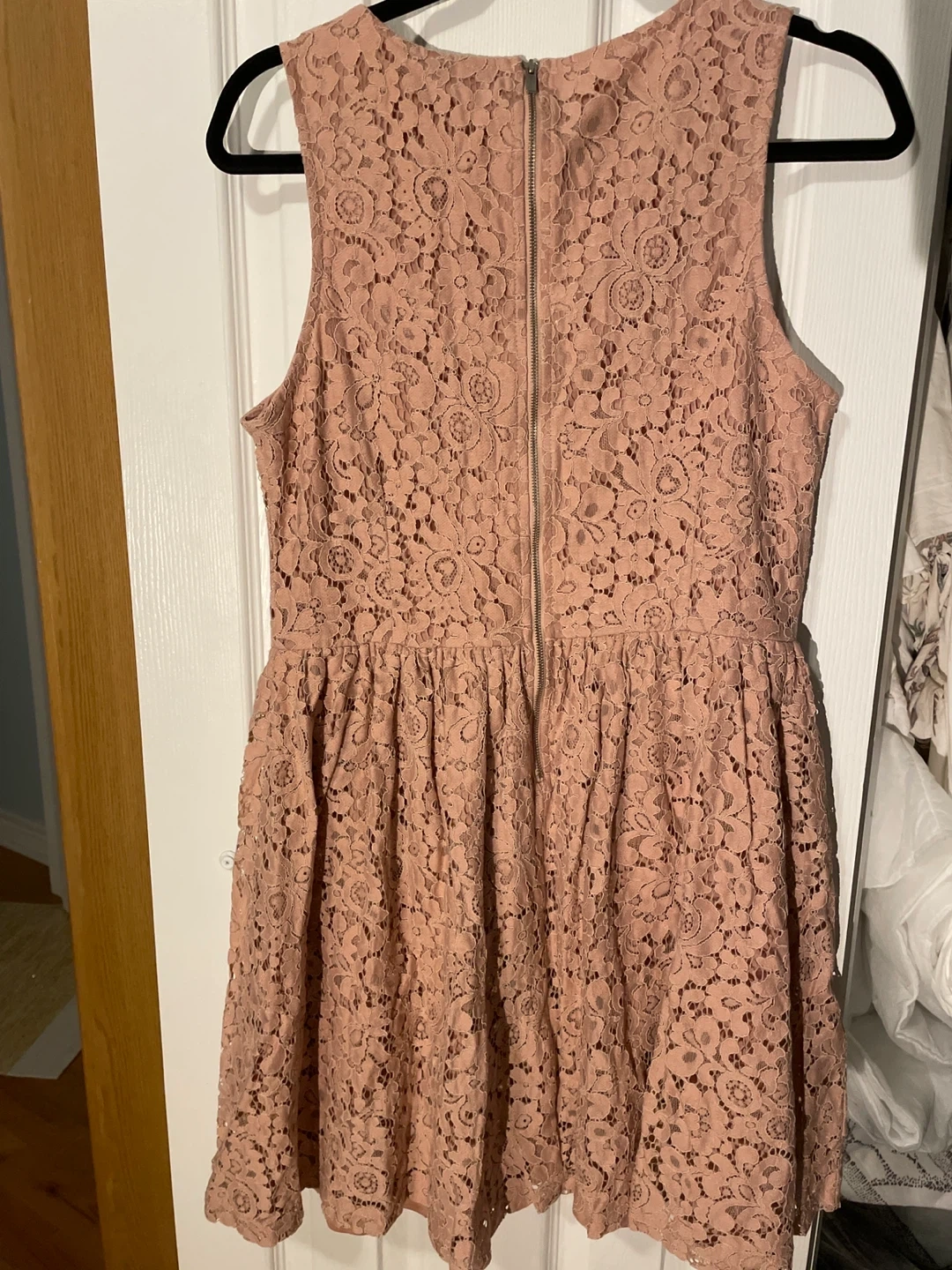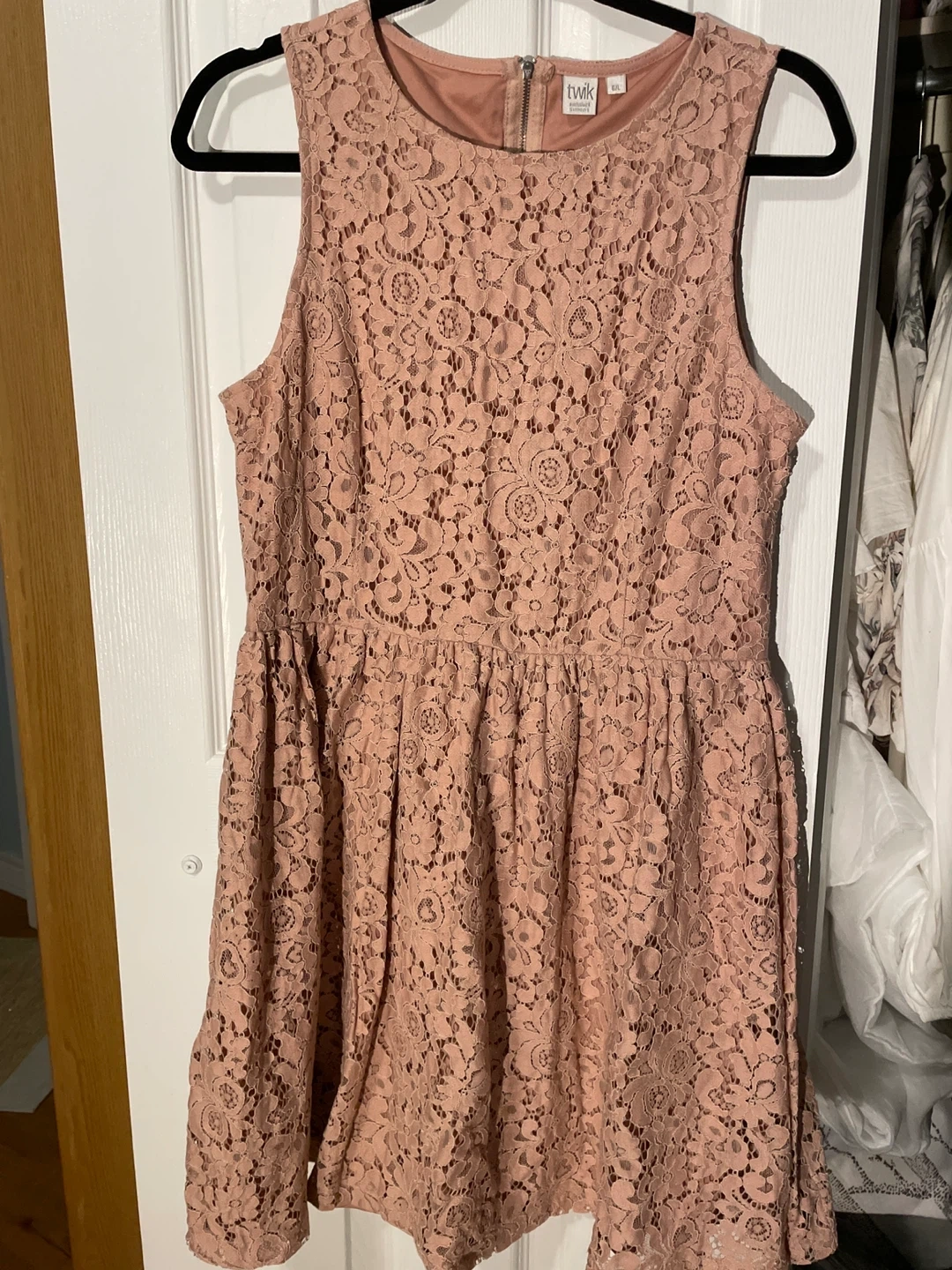 Selling a lovely dusty pink lace dress from Twik sold at Simon’s. It's a size large (can fit like a medium) and in great condition, worn only once for a wedding. Perfect for a special occasion or a night out, and great for an upcoming holiday party!
