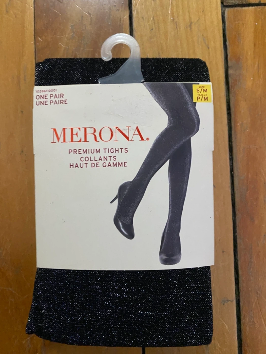 The tights are made of 78% nylon, 16% metallic, 5% spandex, and 1% other fibre.