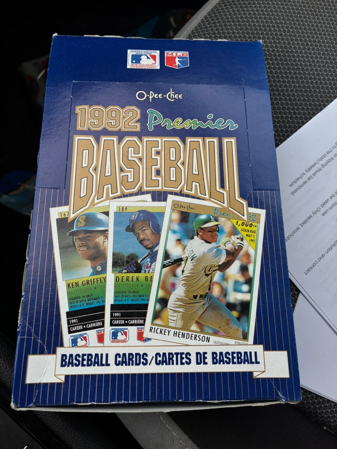 Selling a box of 1992 O-Pee-Chee Premier baseball cards! Great for collectors or anyone looking to relive some '90s nostalgia. The box is in good condition and contains a variety of baseball cards.