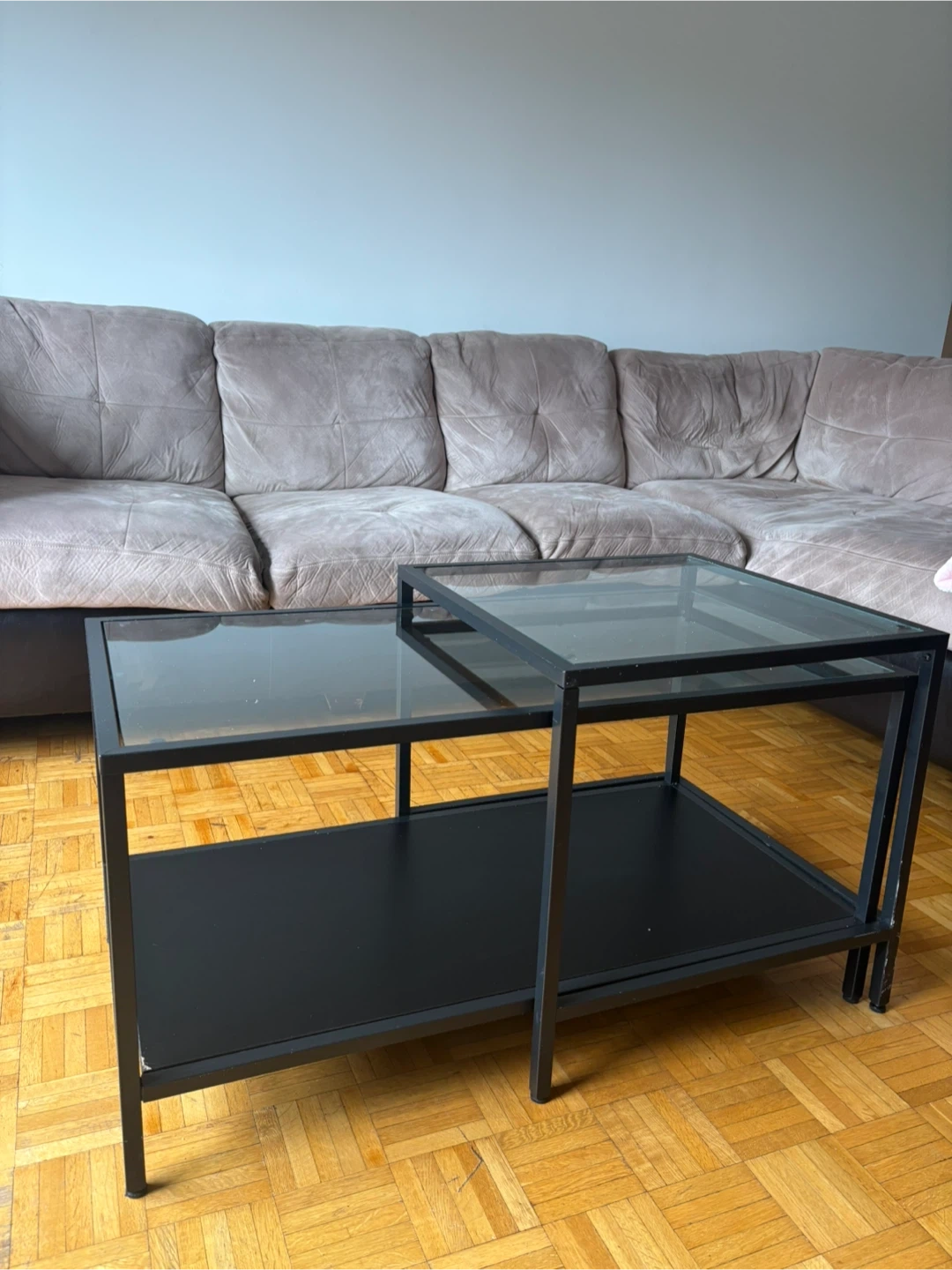 Selling a modern coffee table with a sleek black frame and glass top. It features a convenient lower shelf for storage or decor. It's in good condition and would look lovely in any living room only selling as we are moving open to offers !