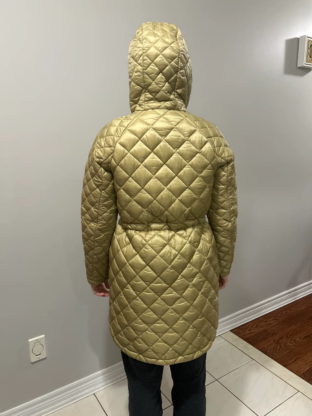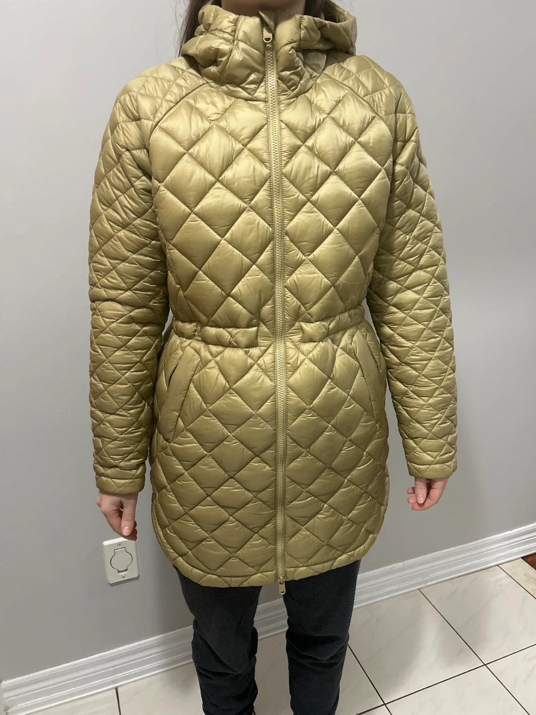 Selling a brand new Athleta down puffer coat in size small! It's a beautiful gold colour and has a quilted design. Perfect for staying warm and stylish during the colder months. It's in great condition and ready for a new home!
