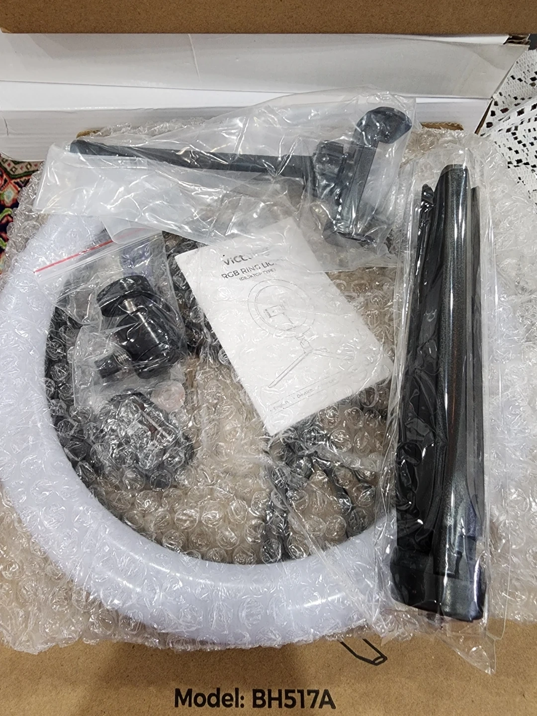 Selling a brand new Victsing RGB Ring Light, model BH517A. It's still in its original box and packaging! All components are included, so it's ready to set up and use right away. Great for video calls, content creation, or just adding some extra light to your space