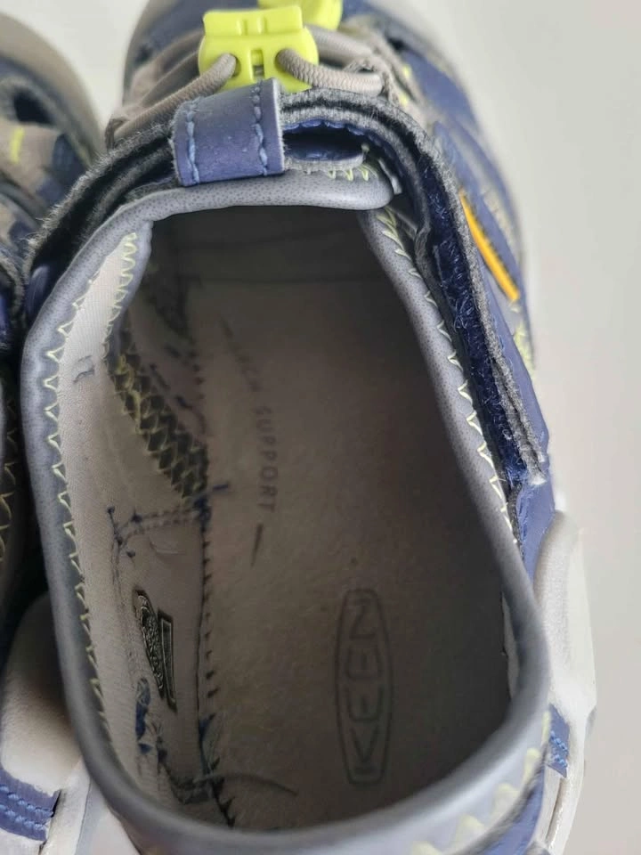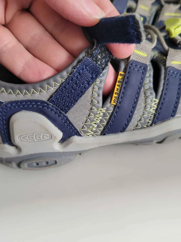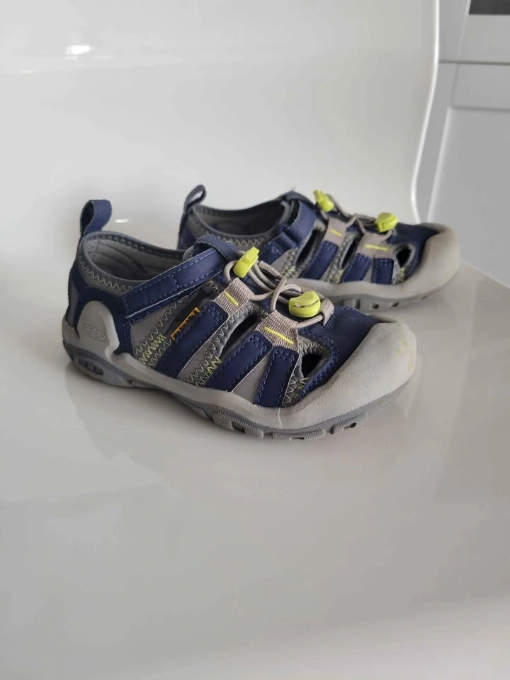 Washable, light weight, non-marking, quick drying sandals for kids. My kid prefers running shoes and doesn't wear these much. Otherwise these are great. Worn only a few times throughout the summer. Good condition. Velcro is like new. Rubber sole hasn't faded. Size 13 (foot length 19.5 cm).