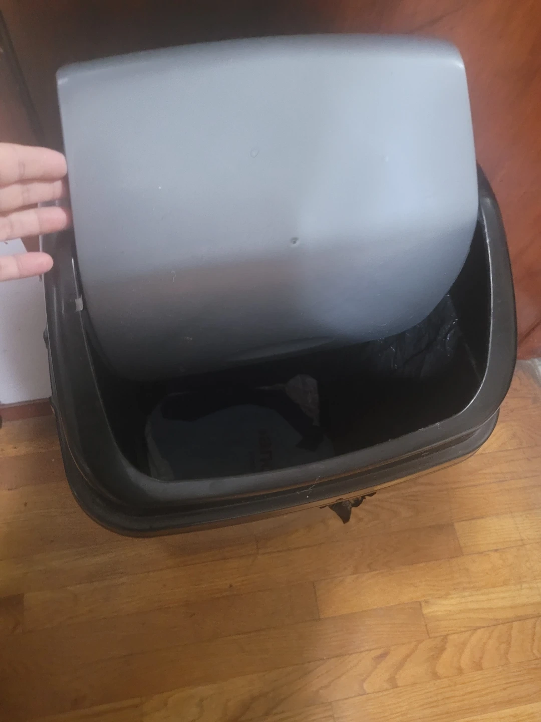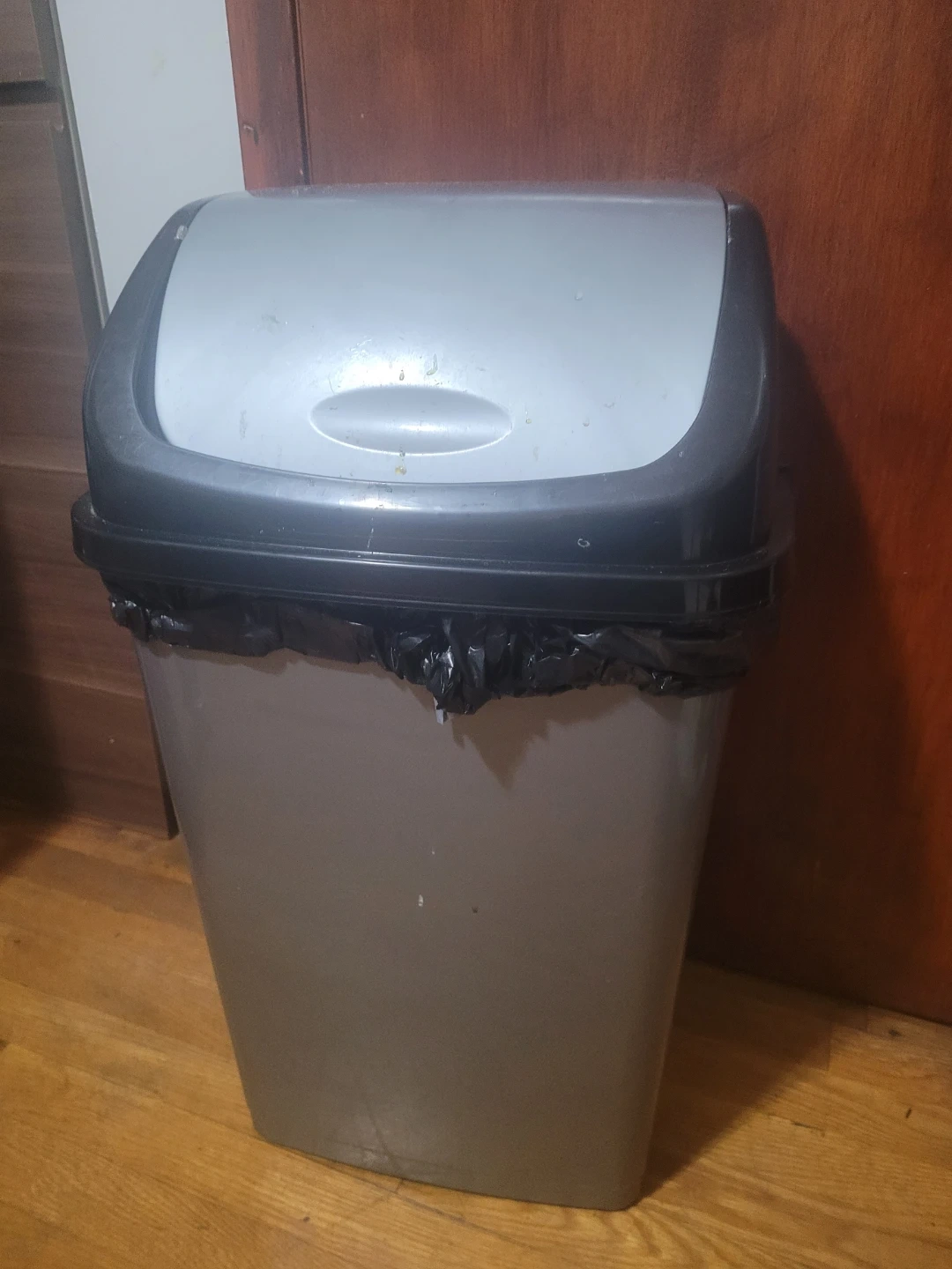 Selling a gray trash can. It's in good condition and ready for a new home! Perfect for any room in the house