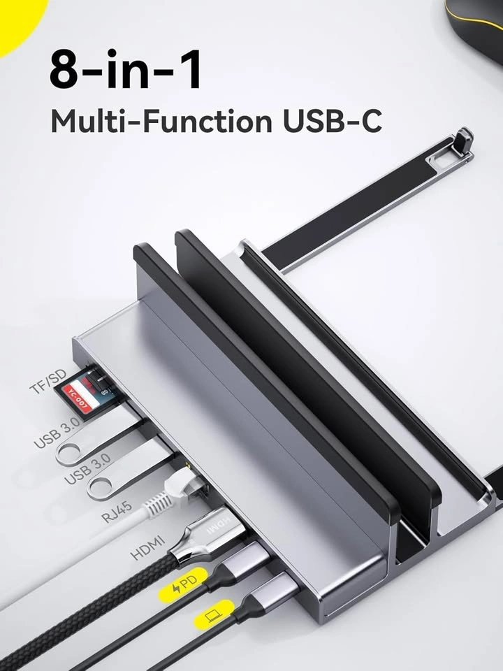 USB C Docking Station, QUUGE 8 in 1 MacBook Laptop Docking Station USB C with HDMI 2.0 4K 60Hz, 2 x USB3.0 Ports, 100W PD, Gigabit Ethernet & SD/TF, Vertical Dock for MacBook Air/Pro, Dell XPS, HP