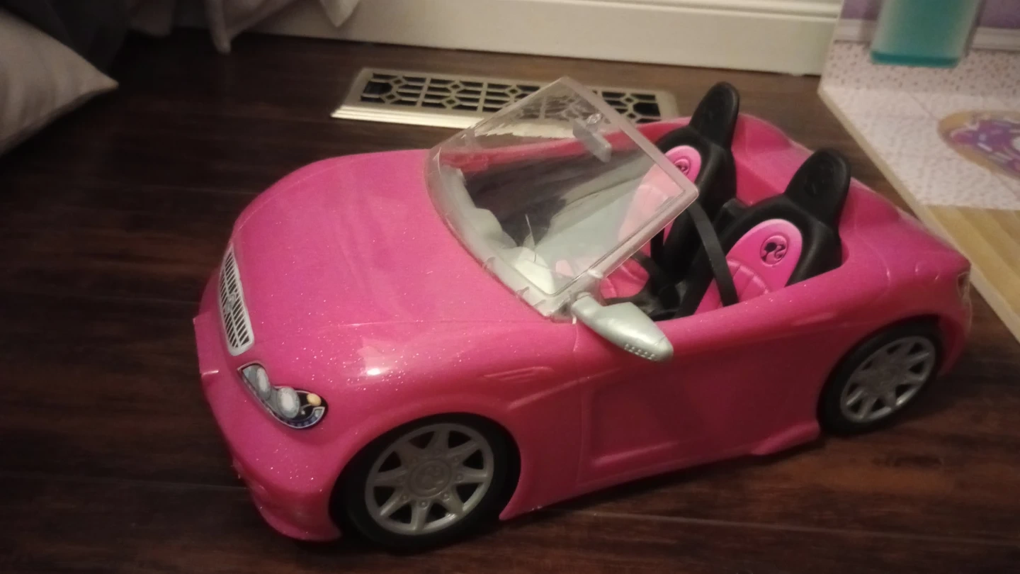 Barbie house with all furniture, toy dog, 2 Barbies, and Barbie convertible all in great condition! House originally bought from Costco 4 years ago for $250 for Christmas.Toilet makes flushing sound and stove lights up and has sounds as well. Measures 60" at its tallest, 52" wide and 16" deep. Will need truck/van to move. Would be an amazing gift for Christmas for another little girl!