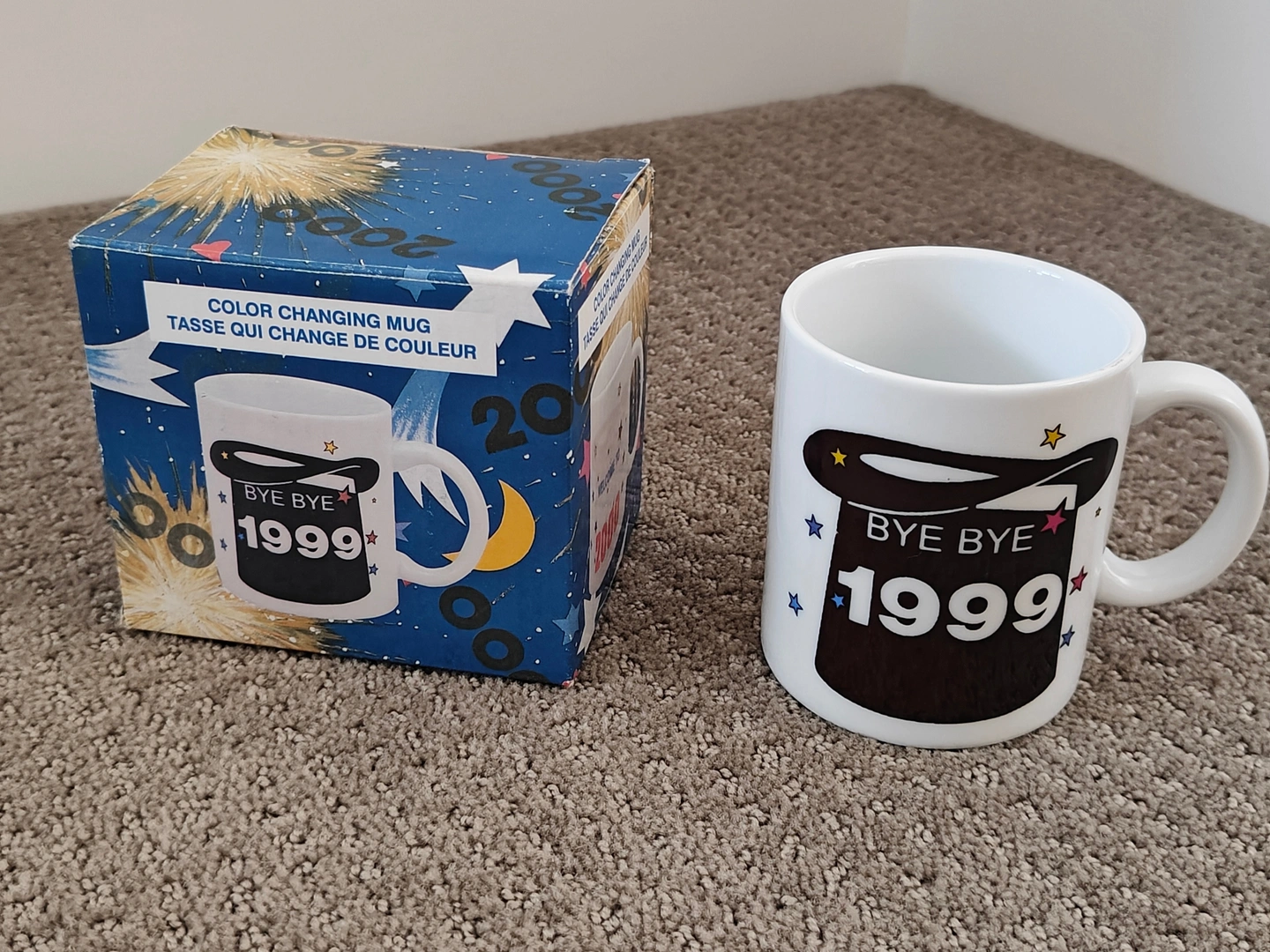 174NOTE: We just mainly used it to add warm water and watch the mug change colour and attempted to rip the bottom sticker off, see attached pictures. I am selling a Color Changing Mugs / Cups in like-new condition. Just add warm water and watch the mug change from "Bye Bye 1999" to "Welcome to 2000". Great New Year Eve gift. Dimensions: * Height: 3 - 3/4" * Diameter: 3" Comes from a pet and smoke-free environment. Pickup in Mount Pleasant (NW Calgary)