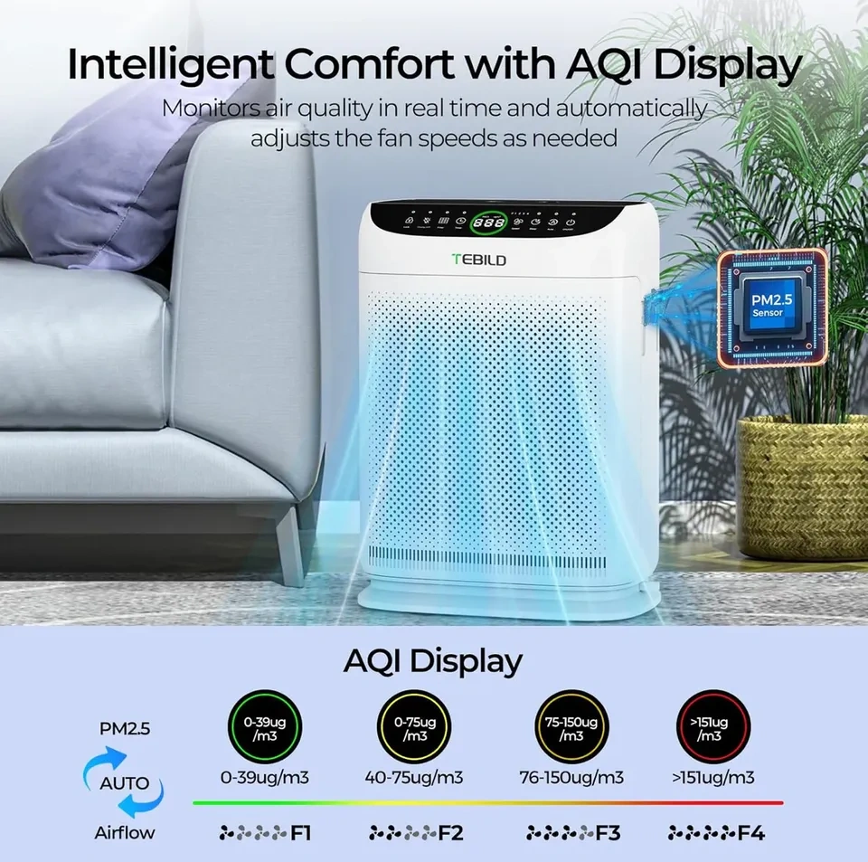 87🌬️ TEBILD 3000t HEPA Air Purifier — Ultra Clean Air for Large Spaces! Say goodbye to dust, dander, and mystery smells! The TEBILD ZX001 is your go-to smart air purifier for open-concept homes, offices, basements, and large rooms up to 3,000 ft²/hour. Sleek, fast, and whisper-quiet — this unit auto-detects your air quality and adapts in real-time. 🔒 Condition: Brand new, never used — sealed and ready to refresh your space. 🌟 Why You’ll Love It: ✅ Dual-Sided Air Inlet for Fast, Even Filtration ✅ Built-in PM2.5 Sensor with Real-Time AQI Display ✅ Ultra-Quiet Sleep Mode (Only 15dB — quieter than a whisper) ✅ Auto Mode with Air Quality Light Indicator 🌈 ✅ Washable Pre-Filter = Long-Term Savings 💸 ✅ Aromatherapy Tray — Add Essential Oils for a Spa Vibe 🌿 ✅ Remote Control + Touch Panel + Child Lock 🔒 ✅ Certified Ozone-Free (CARB, ETL, EPA, FCC Approved) 📦 Box Includes: Air Purifier, Remote Control, Filter Pre-Installed, Manual 🔌 Voltage: 120V | Power: 36W | Model: ZX001 🎯 Perfect For: Allergy sufferers, pet homes, large spaces, offices, basements, condo living 📞 Contact: Message directly here with any questions — happy to help.
