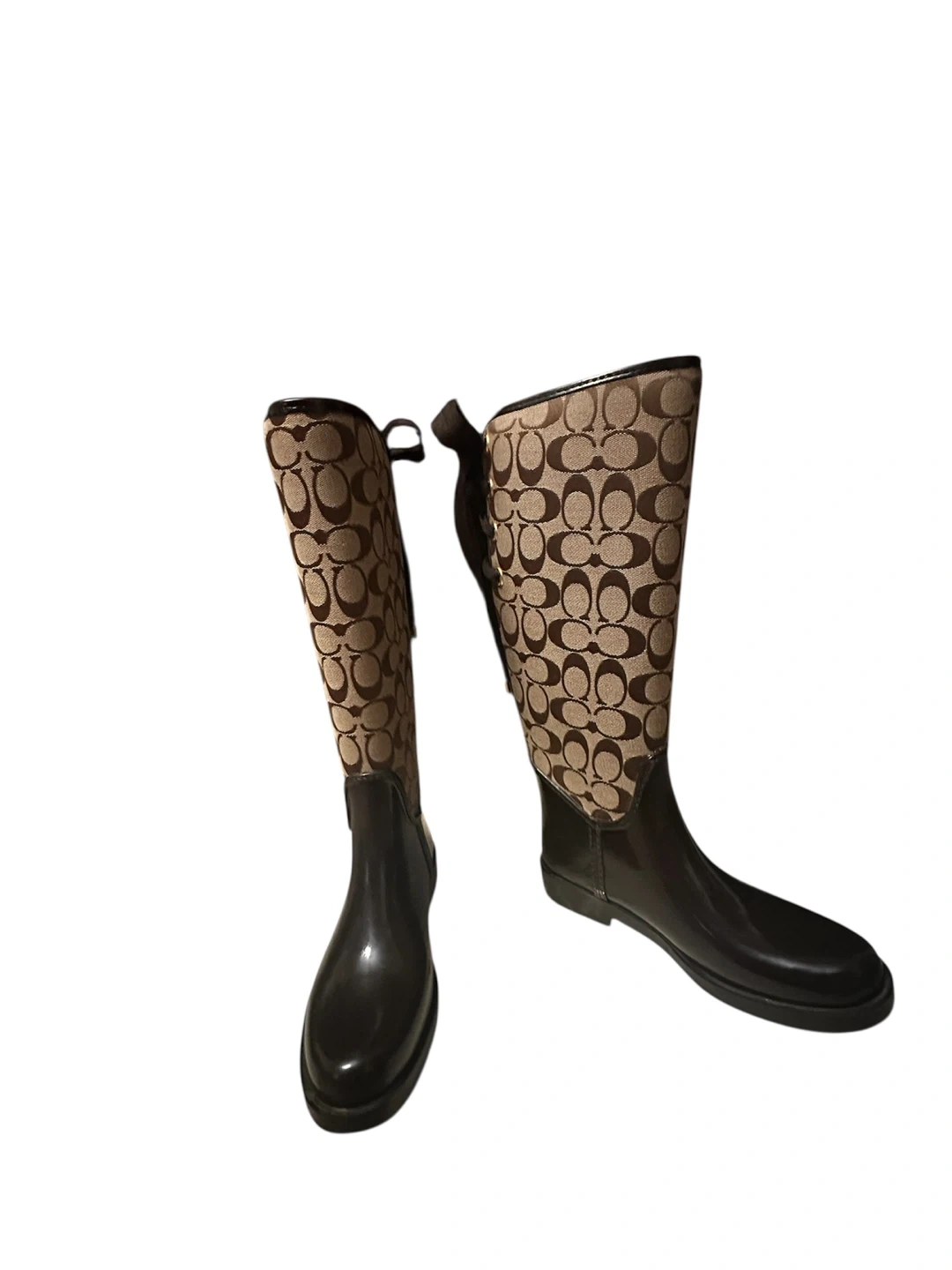 Cute Coach rain boots with the signature Coach logo pattern and ribbon laces. They're great for rainy days! Pick up in Richmond Hill