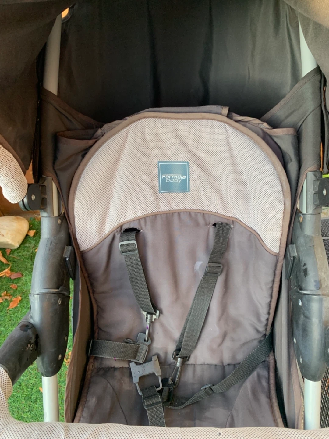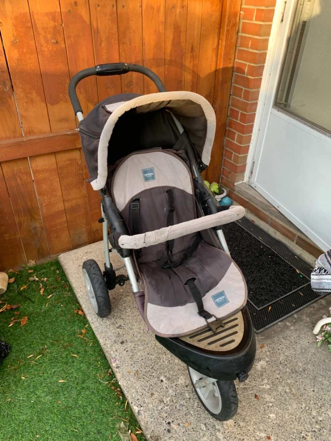 Selling a Mamas & Papas stroller! It's a 3-wheel design, perfect for navigating sidewalks and trails. The stroller has a neutral colour scheme with a black and grey seat and frame. It shows some signs of use, but it's still in good working condition and ready for a new family