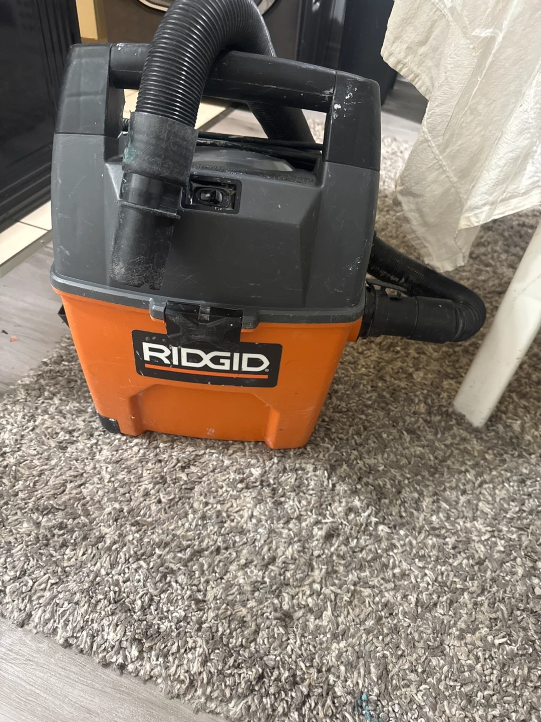 Selling a Ridgid wet/dry vacuum. It's in good working condition and ready to help with any cleaning tasks around the house or garage! It has some signs of use but functions perfectly.
