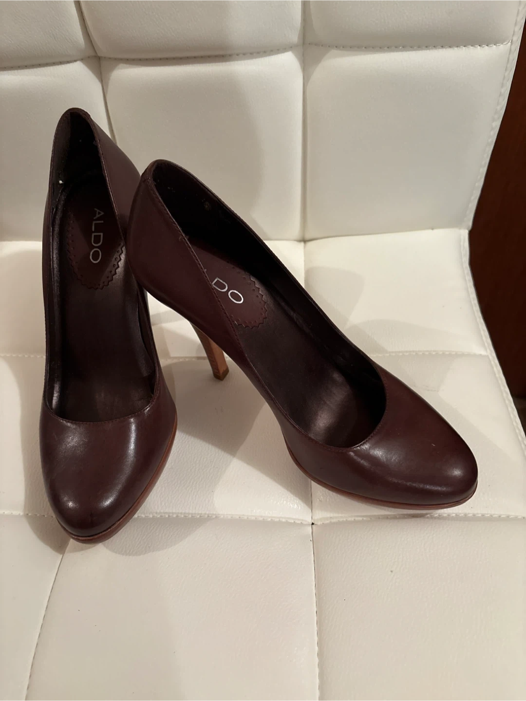 Selling a pair of Aldo heels in size 9. They're a lovely shade of brown and made of leather. They have some signs of wear on the soles, but otherwise they're in great shape!