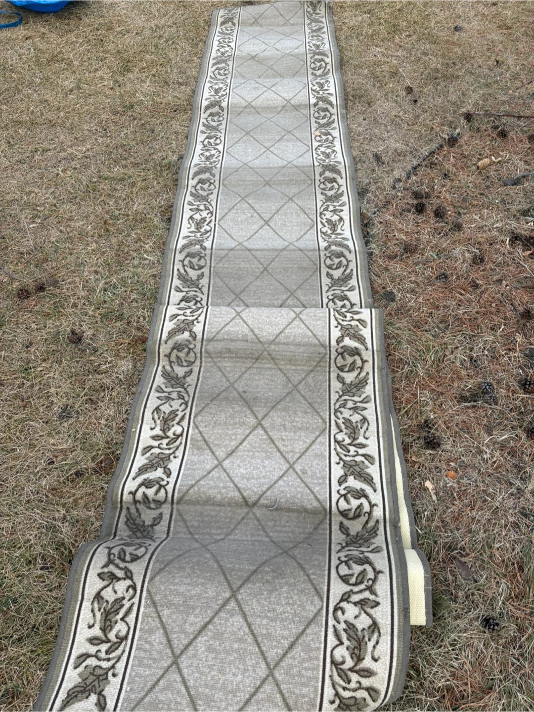 Selling a runner rug with a floral pattern. It shows signs of use, as pictured, but still has plenty of life left! Made in Belgium. Pick up at Morley trail NW