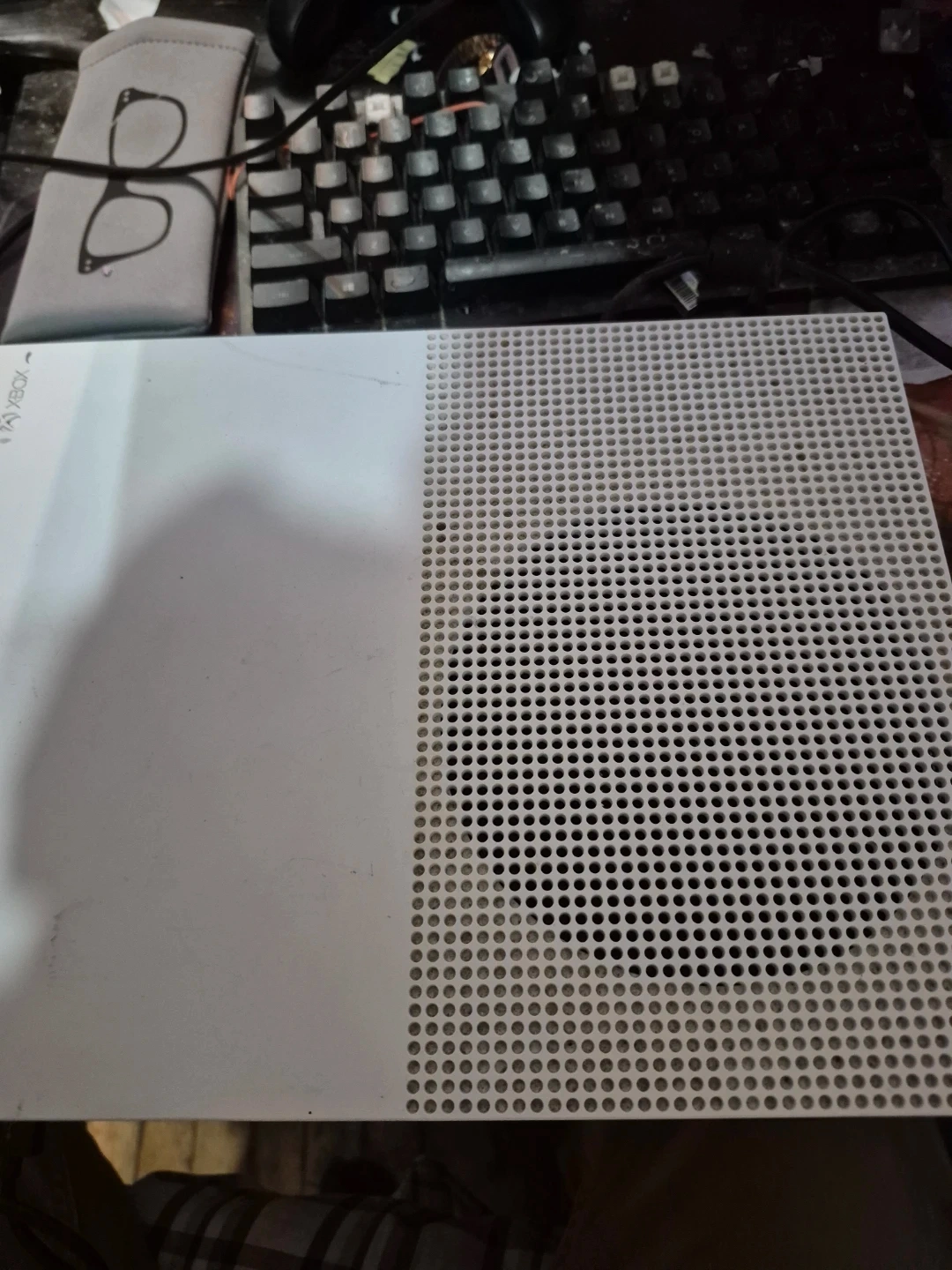 Selling a used Xbox One S console in white. It's in good working condition and ready for a new home. Perfect for gaming!