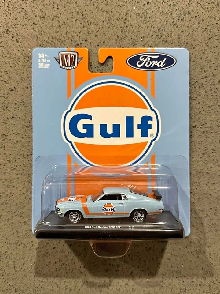 Beautiful M2 Machines collectible featuring the legendary 1970 Ford Mustang Boss 302 in the iconic Gulf Oil livery. A premium die-cast model with amazing details — perfect for muscle car and Gulf Racing fans.