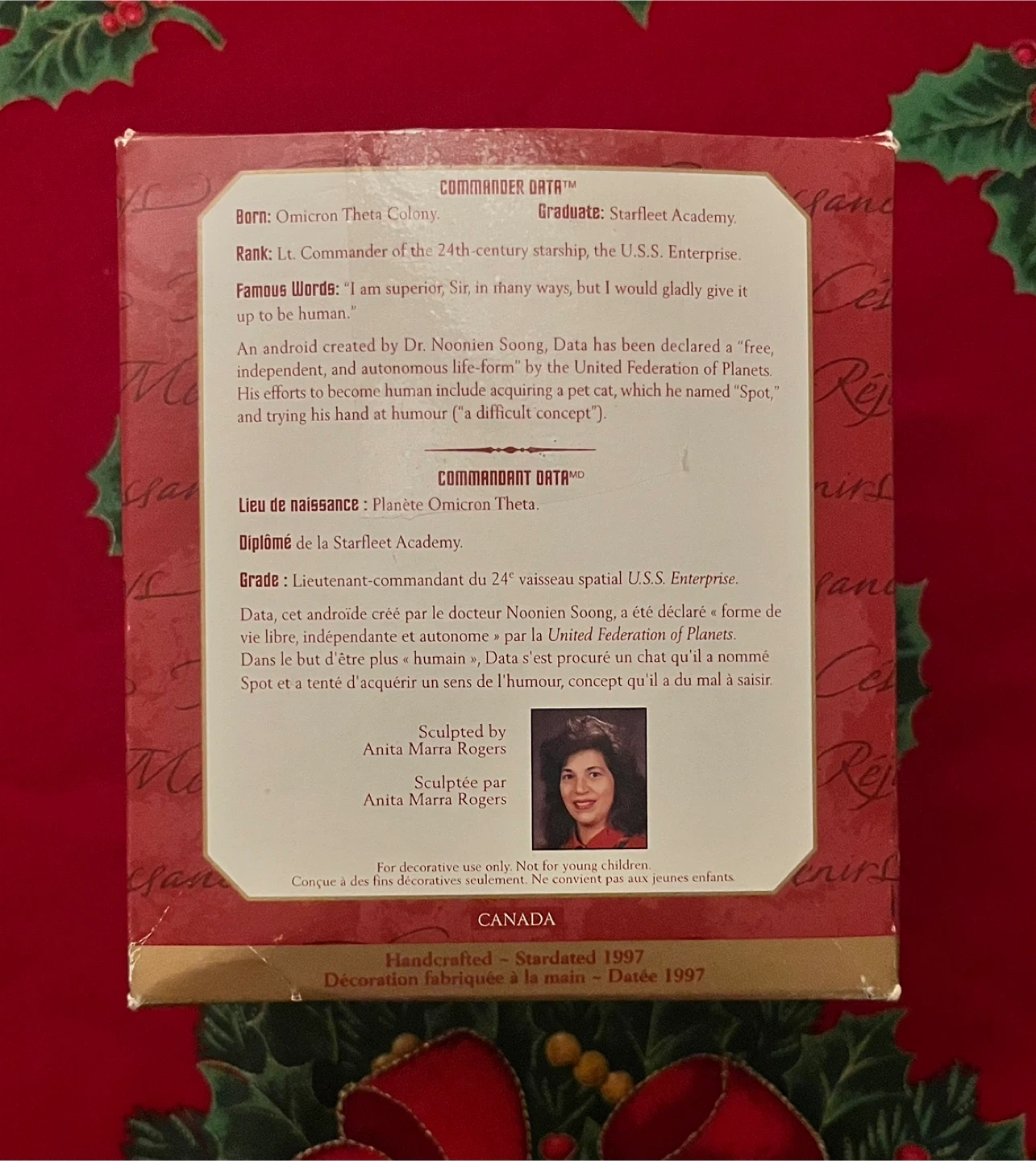 Selling a Hallmark Keepsake Ornament of Commander Data from Star Trek: The Next Generation! It comes with the original box.