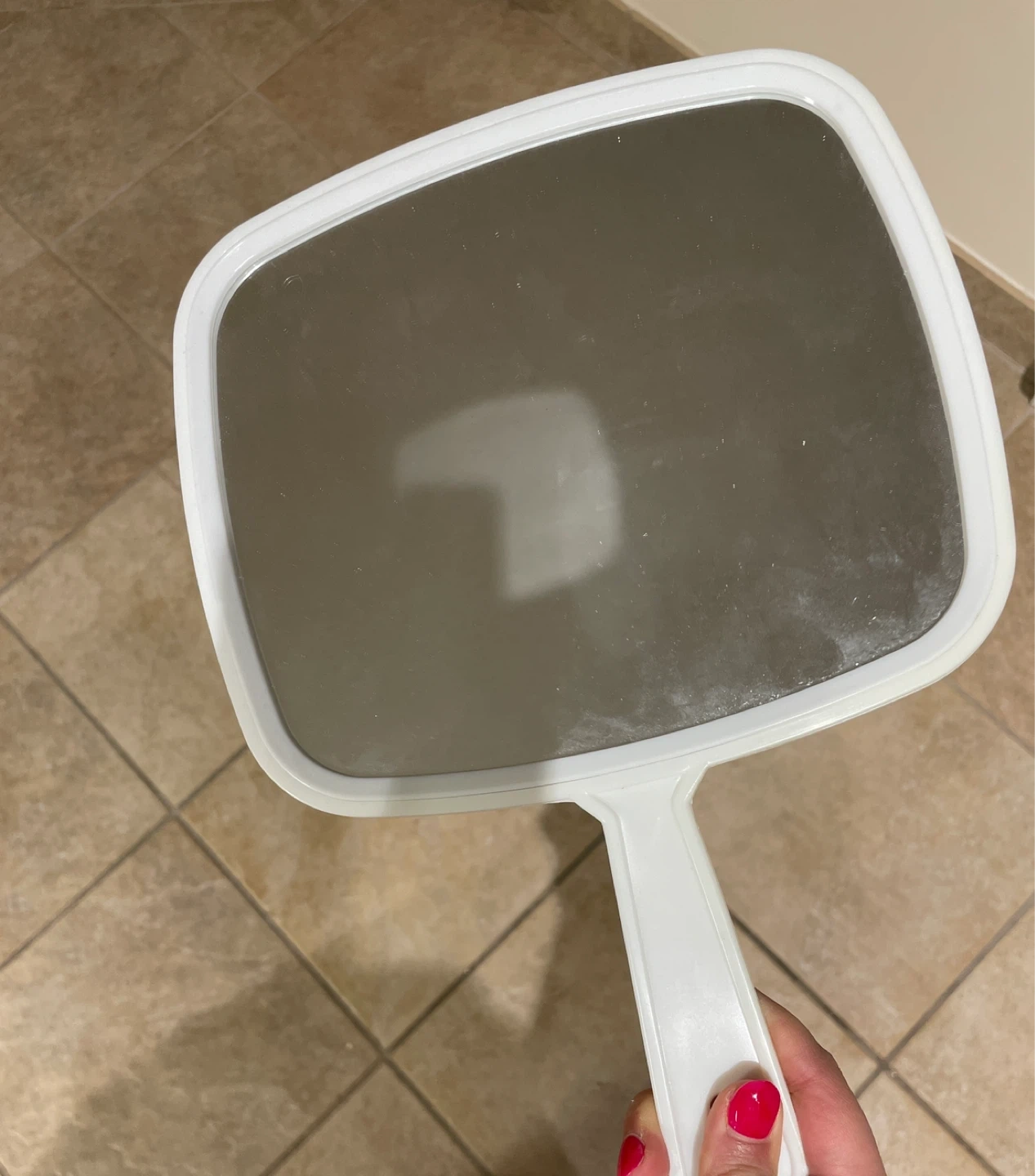 Selling a simple white handheld mirror!