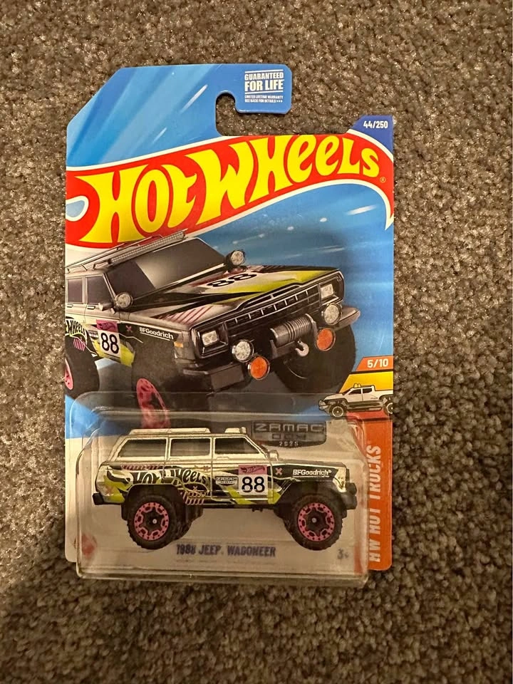 Selling a Hot Wheels 1988 Jeep Wagoneer from the limited ZAMAC 2025 series – #44/250 and 5/10 in the HW Hot Trucks lineup.