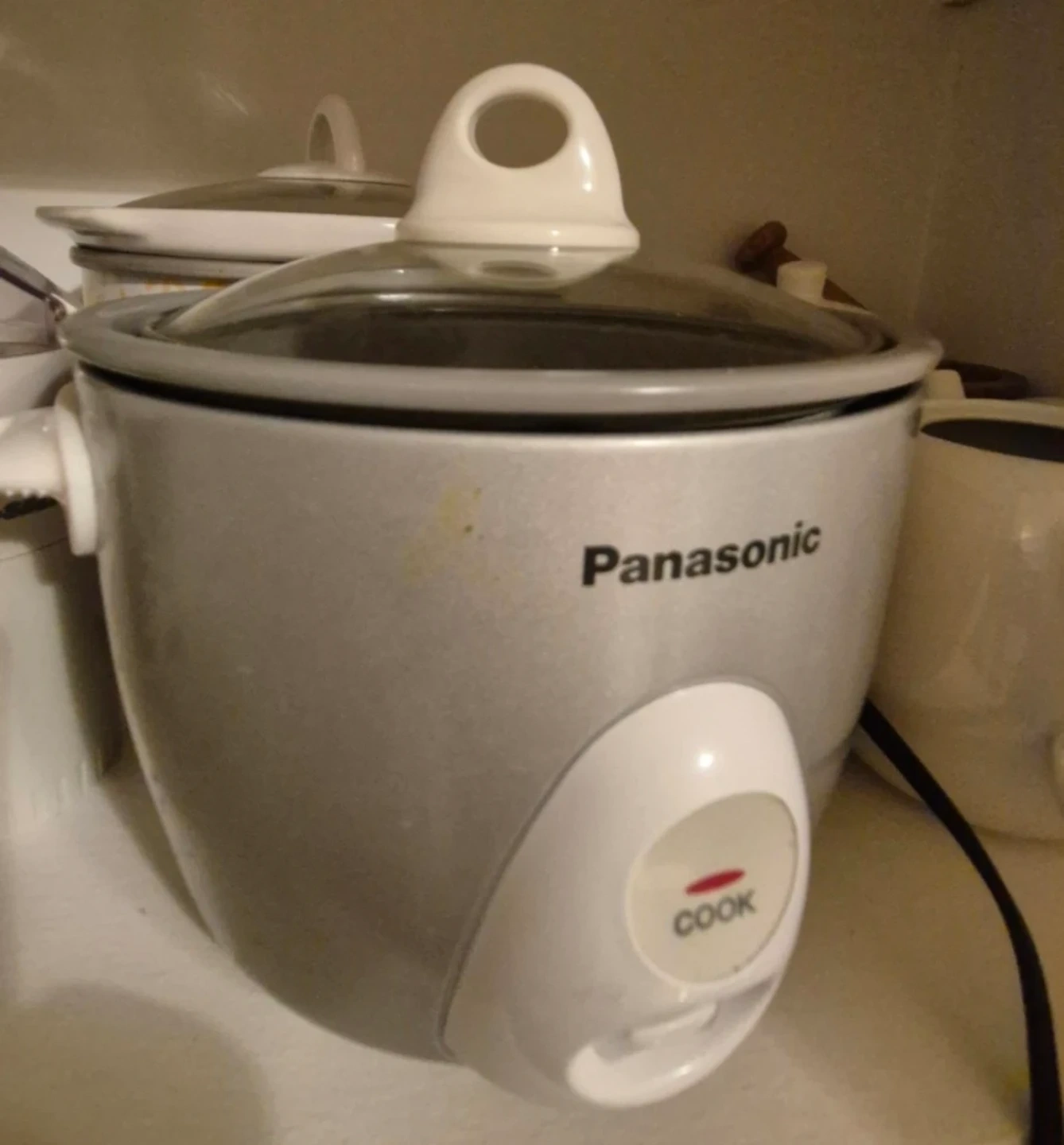 65Selling a Panasonic rice cooker! It's in good working condition and ready to make some delicious rice for you. It has a simple 'cook' button for easy operation. Perfect for small kitchens or anyone who enjoys a freshly cooked bowl of rice!