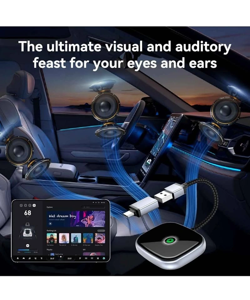 Wireless carplay Adapter for iPhone-Easily Upgrade Wired CarPlay to Wireless Connectivity, Includes USB-A to USB-C Adapter, Plug & Play for iPhone (iOS 10 and Above)