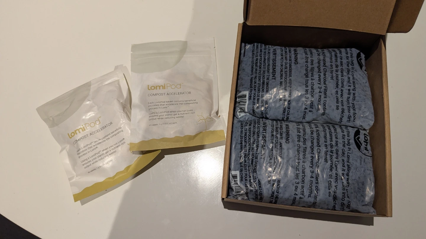 Selling a Lomi kitchen composter! It helps reduce waste by turning food scraps into dirt in just a few hours. It's super easy to use and great for the environment. Comes with 2 LomiPod compost accelerator packs and 9 activated charcoal filters packs. In original box.