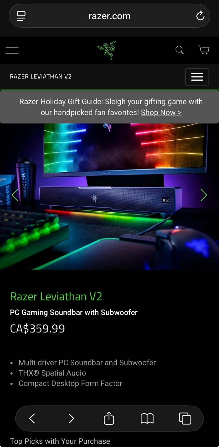 Selling a Razer Leviathan V2 PC Gaming Soundbar with Subwoofer. It's brand new and comes with the sealed box! It features THX Spatial Audio for a wide, true-to-life soundstage, and seamless PC and mobile connection via Bluetooth. A compact desktop form factor ensures it fits neatly on your desk.