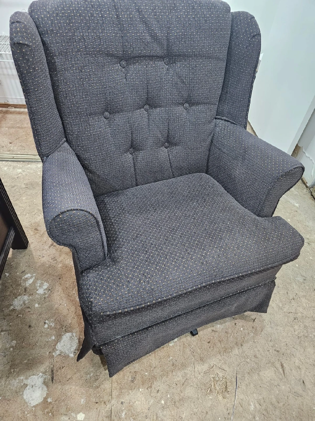 Here's a comfy wingback armchair in a nice grey colour. It's in good condition and ready for a new home! Perfect for relaxing after a long day or adding a touch of classic style to your living room
