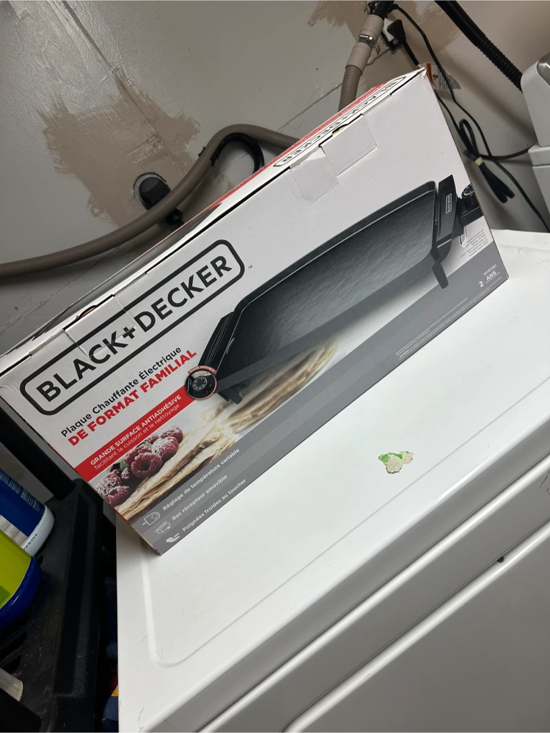 Selling a brand new Black+Decker electric griddle still in its original packaging! It features a non-stick surface and variable temperature control for easy cooking and cleanup. Perfect for making family meals!