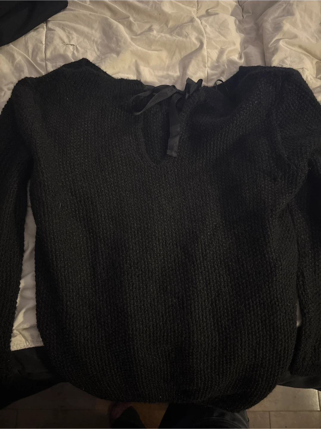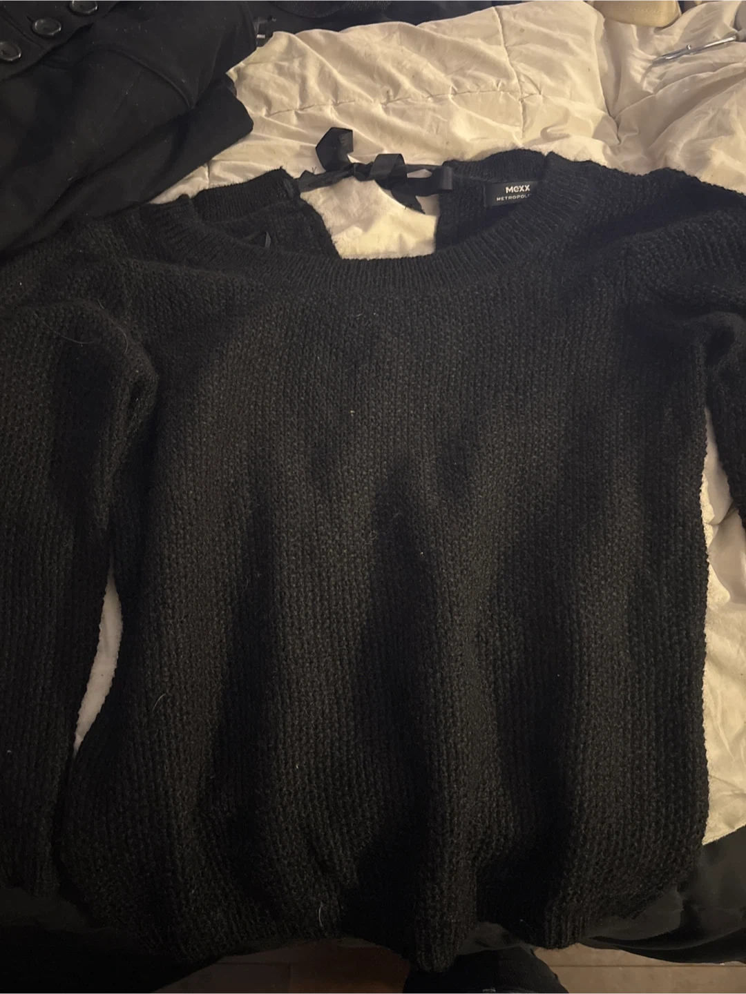 Cozy black knit sweater from Mexx It's in great condition and perfect for layering during the cooler months. The sweater features a unique tie detail at the back, adding a touch of style to this classic piece