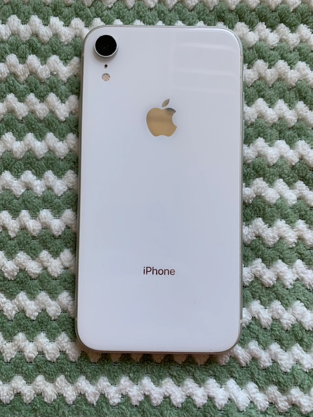 Selling a white iPhone XR! It has some minor scratches on the screen, but otherwise it's in good condition. Has some wear and tears Battery great