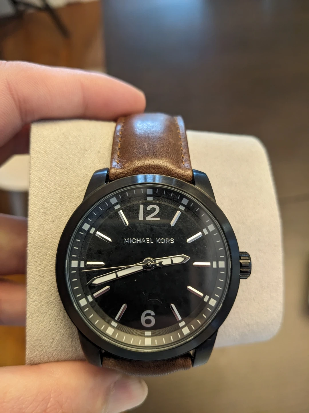 Selling a Brand New Michael Kors watch with a classic black dial and a stylish brown leather strap.