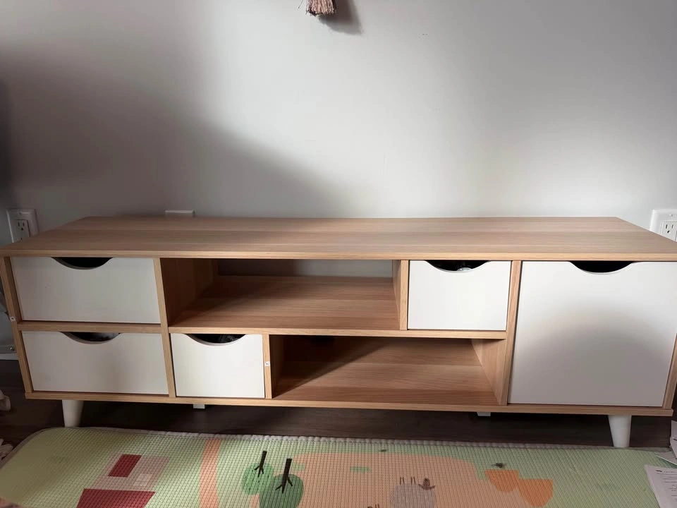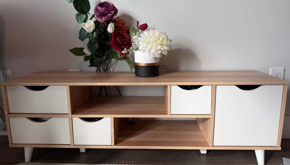 Selling a Tangkula 59-inch Mid Century Modern TV Stand in oak finish. Modern, sturdy, and offers lots of storage. Gently used and in excellent condition.