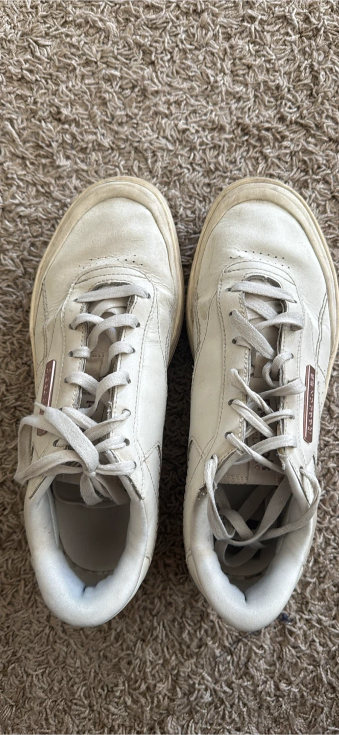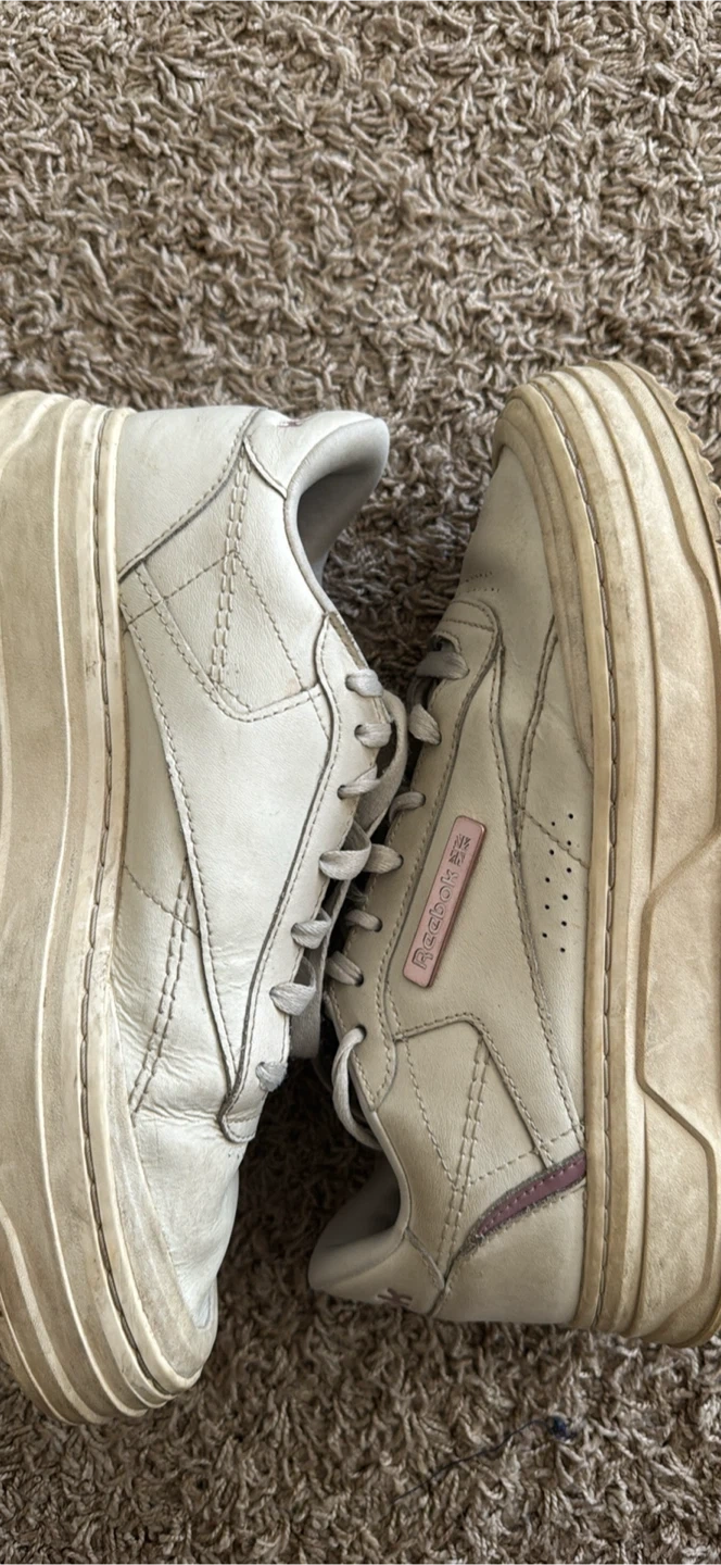 Selling a pair of Reebok Club C Extra women's shoes in size 8. They have a platform sole for a bit of extra height and style. These shoes are perfect for everyday wear!